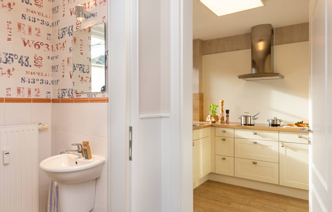 Drei Etagen mit zwei Schlafzimmern, zwei Bädern, einer separaten Küche, einem geräumigen Wohn- und Esszimmer und eine herrliche Terrasse mit Strandkorb erwarten Sie.