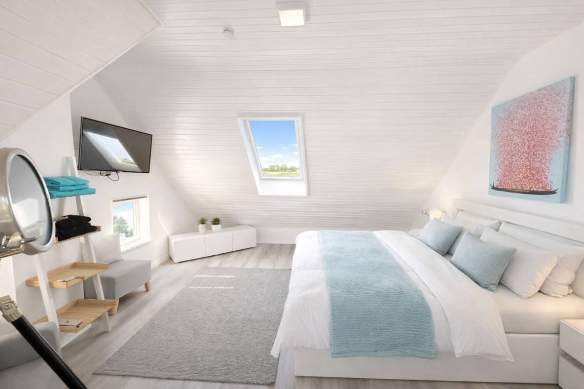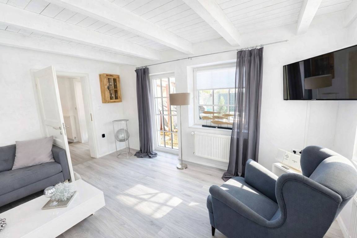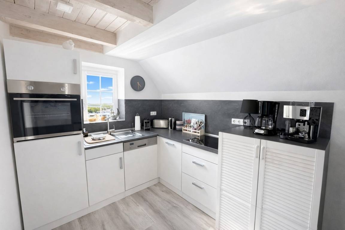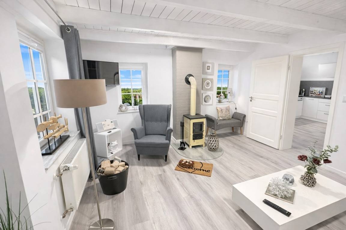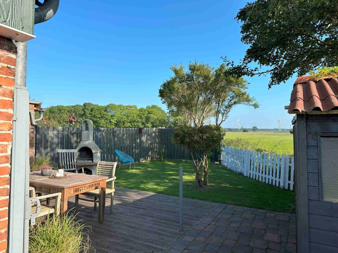 ? **Huus an't Diek – Stilvolle Maisonette-Ferienwohnung in Deichnähe** ? Willkommen im **„Huus an't Diek"**, Ihrer gemütlichen Maisonette-Ferienwohnung im idyllischen Norden, Ortsteil **Ostermarsch**. In ruhiger Lage, nur ca. **900 Meter vom Deich und der Nordsee entfernt**, erwartet Sie ein liebevoll eingerichtetes Feriendomizil mit Wohlfühlgarantie und typisch ostfriesischem Charme ?. Bereits von der Straße aus genießen Sie den Blick auf den **Leuchtturm von Norderney** – ein echtes Highlight und der perfekte Urlaubsauftakt ?. --- ? **Wohnen & Genießen** Die helle und moderne **Doppelhaushälfte** bietet alles, was Sie für einen entspannten Aufenthalt benötigen. ?️ **Voll ausgestattete Küche** Die Küche verfügt über: • Spülmaschine • Waschmaschine mit Trocknerfunktion • Kühlschrank • Cerankochfeld & Backofen • Kaffeemaschinen, Toaster & reichlich Geschirr Auf der gemütlichen **Eckbank** frühstücken Sie mit Blick Richtung Deich – hier beginnt jeder Urlaubstag besonders schön ☕?. ?️ **Wohnzimmer** Das freundliche Wohnzimmer lädt mit kleiner Eckcouch, **Smart-TV** ? und einem **Kaminofen** ? (Holz bitte selbst mitbringen) zu entspannten Abenden ein. Von hier aus gelangen Sie direkt auf die **Holzterrasse**. --- ? **Terrasse & Garten** Die Terrasse führt in einen kleinen, gepflegten **Garten mit weitem Blick**. Zur Ausstattung gehören: • Strandkorb ? • Holzkohlegrill ? • Gartentisch mit 4 Stühlen Perfekt für sonnige Stunden, gemütliche Grillabende oder einfach zum Abschalten ?. --- ?️ **Schlafen & Bad** Das **Schlafzimmer** ist ausgestattet mit: • komfortablem **Boxspringbett (180 × 200 cm)** • gemütlichem Ohrensessel • **Smart-TV** ? Ideal für erholsame Nächte ?. ? **Badezimmer** Das moderne Bad verfügt über eine **bodentiefe Dusche mit Regendusche**. ? Handtücher sind selbstverständlich inklusive. --- ? **Lage & Umgebung** Bis zum Deich sind es nur wenige Minuten mit dem Fahrrad ?. Dort genießen Sie den freien Blick auf die **Nordsee** – mit der Insel **Norderney** am Horizont ?. Ostermarsch liegt ideal zwischen **Norddeich und Neßmersiel**. Von hier erreichen Sie: • Sandstrände, Häfen & Freizeitangebote • Fähren zu den Inseln **Norderney, Juist & Baltrum** ⛴️ • wunderschöne Radwege direkt am Deich ✈️ Ein kleiner Flughafen in der Nähe bietet zudem **Rundflüge zu den Inseln** an – ein besonderes Erlebnis! --- ? **Ideal für Paare** Die Maisonette-Wohnung ist **ideal für zwei Gäste**. Kinder sind herzlich willkommen, schlafen jedoch auf der Couch oder auf mitgebrachten Schlafmöglichkeiten. --- ℹ️ **Service & Tipps vor Ort** • ? **Kostenloser Parkplatz** direkt am Haus • ? **Fahrradverleih Gäde** (inkl. E-Bikes, Lieferung bis zur Haustür): ? [www.fahrradservice-norden.de]( • ? **Hofladen & Hofcafé Kleemann** (frische Eier, Kartoffeln, Kuchen) ? Steinweg 18, 26506 Norden • ? **Kleinste Waffelstube der Welt – Lüttje Hörn** • ? **Frischer Fisch & Fischbrötchen:** Luth Eilts Fischimbiss • ? **Waloseum & Seehundstation Norddeich** • ? **Strandkorbvermietung Norddeich** (online buchbar) --- ? **Virtueller Rundgang** Erleben Sie das Ferienhaus schon vorab mit unserem **360°-Rundgang**: ? [ --- ? **Weitere Unterkunft** Die zweite Doppelhaushälfte **„Huus an't Diek – Erdgeschosswohnung mit Pool"** (für bis zu 4 Personen, 2 Schlafzimmer) kann ebenfalls bei uns gebucht werden. --- ? **Wir sind Ostfriesen und lieben unsere Küste.** Mit unseren liebevoll eingerichteten Ferienwohnungen möchten wir Ihnen einen **unvergesslichen Urlaub an der ostfriesischen Nordsee** ermöglichen. ✨ **Wir freuen uns auf Sie – im Huus an't Diek.** ✨