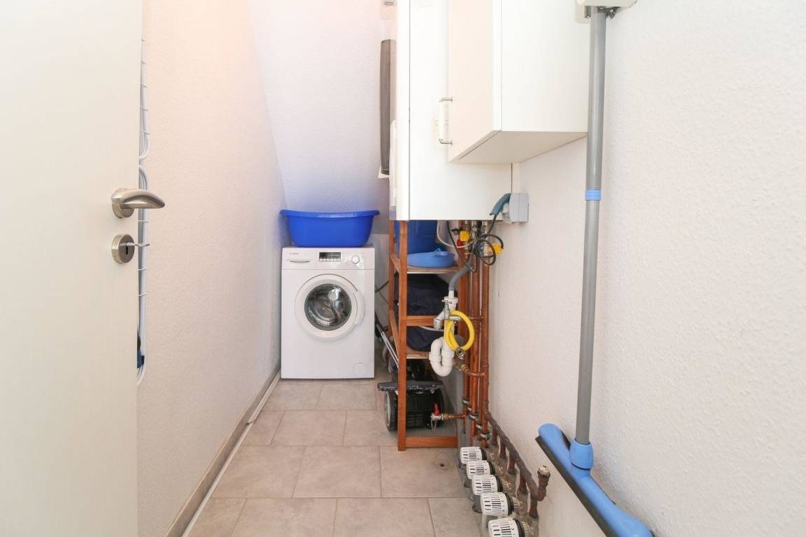 Im Obergeschoss empfängt Sie ein helles Küchen-/Wohnkonzept mit einer gut ausgestatteten Einbauküche und einem gemütlichen Wohnbereich mit Sofa, Sesseln und einer bequemen Leseecke. Über die bodentiefen Fenster gelangen Sie direkt auf den Balkon, welcher mit Gartenmöbeln ausgestattet ist. Auf gleicher Ebene befindet sich das Tageslichtbad mit Dusche, sowie ein Abstellraum mit Waschmaschine.