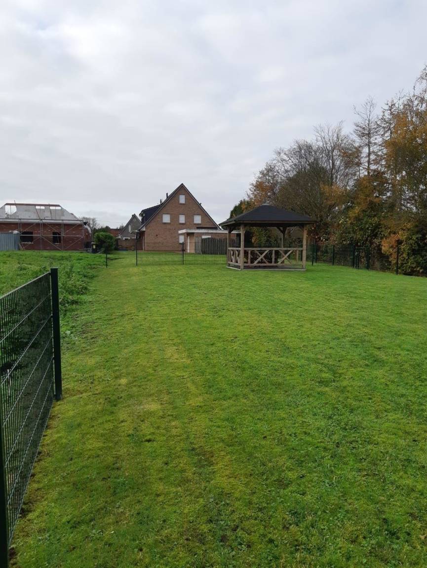 Hinter dem Haus befindet sich die ca. 600 m² große Spiel -und Liegewiese, welche Ihnen zur gemeinschaftlichen Nutzung zur Verfügung steht.