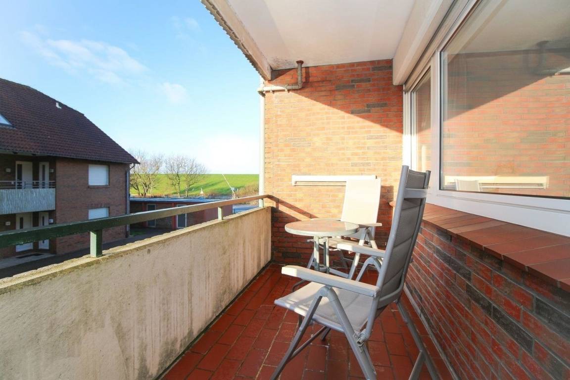 Diese helle, freundliche Ferienwohnung ist für 2 Personen ausgelegt und liegt ca. 75 m vom Deich entfernt. Die Wohnung befindet sich im 1. Stock einer Wohnanlage und verfügt über einen überdachten Balkon in Südwestausrichtung.