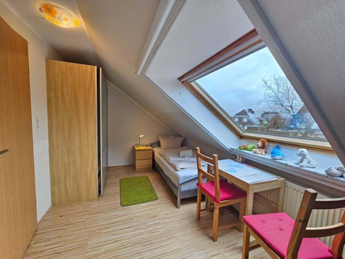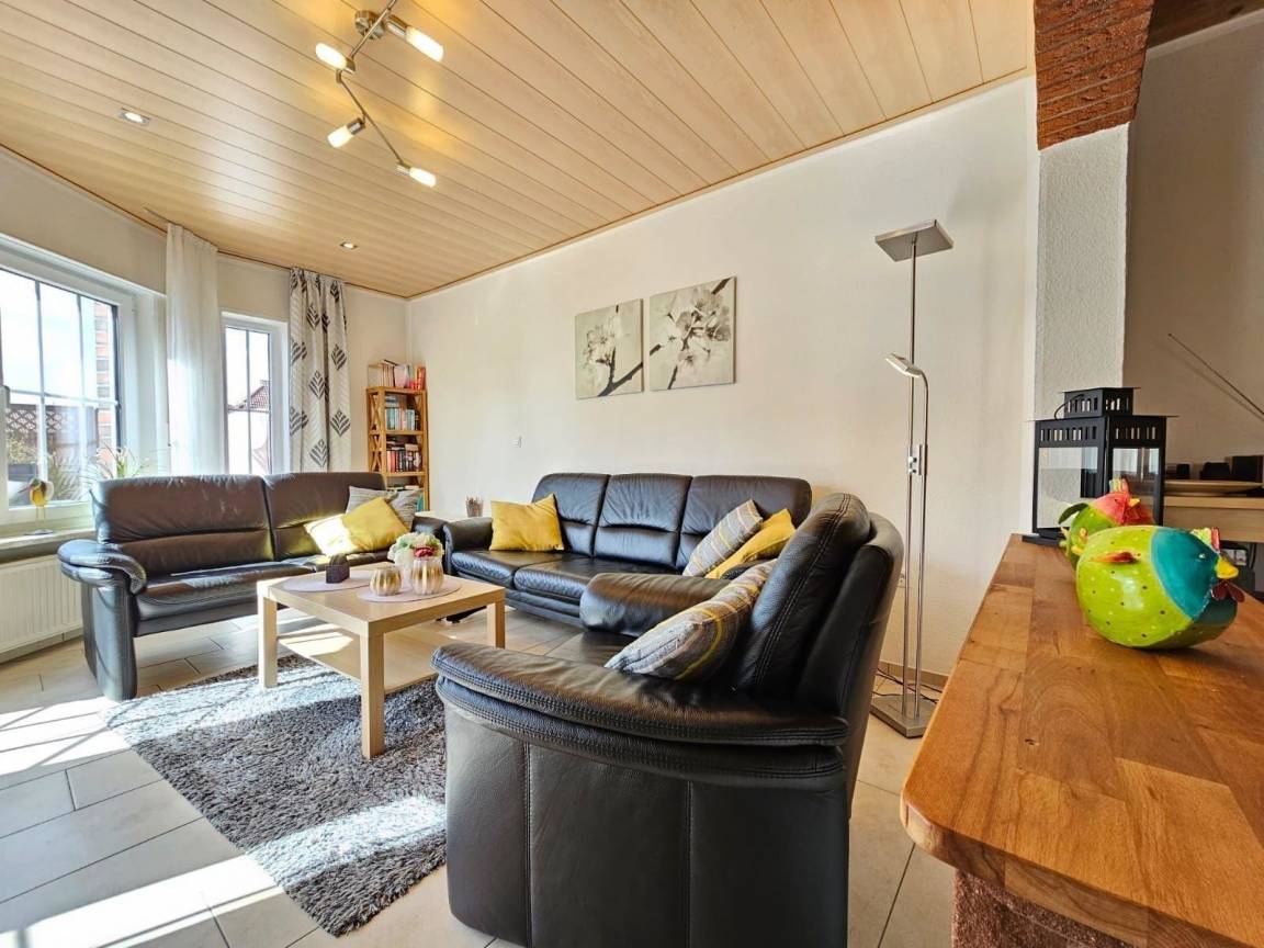 Das Ferienhaus Merlin in Norden-Norddeich ist eine charmante Doppelhaushälfte, die auf ca. 100 m² Platz für 2–6 Personen bietet. Der geschmackvoll eingerichtete Wohn-/Essbereich verfügt über eine gemütliche Sofalandschaft, einen großen Esstisch sowie SAT-TV und Musikanlage. Die offene Küche ist komplett ausgestattet mit Spülmaschine, Herd, Backofen, Mikrowelle, Kühlschrank und Kaffeemaschine. Im Erdgeschoss befindet sich ein Schlafzimmer mit Doppelbett und ein modernes Badezimmer mit Dusche. Im Obergeschoss befinden sich zwei weitere Schlafzimmer, eines mit Doppelbett und eines mit zwei Einzelbetten, sowie ein Badezimmer mit Badewanne. Ein separates Gäste-WC im Erdgeschoss erhöht den Komfort. Für Familien sind Hochstuhl, Babybett und Wickeltisch verfügbar. Allergikerfreundlich ist das Haus rauchfrei und haustierfrei. Bettwäsche und Handtücher können gegen Aufpreis gebucht werden.
