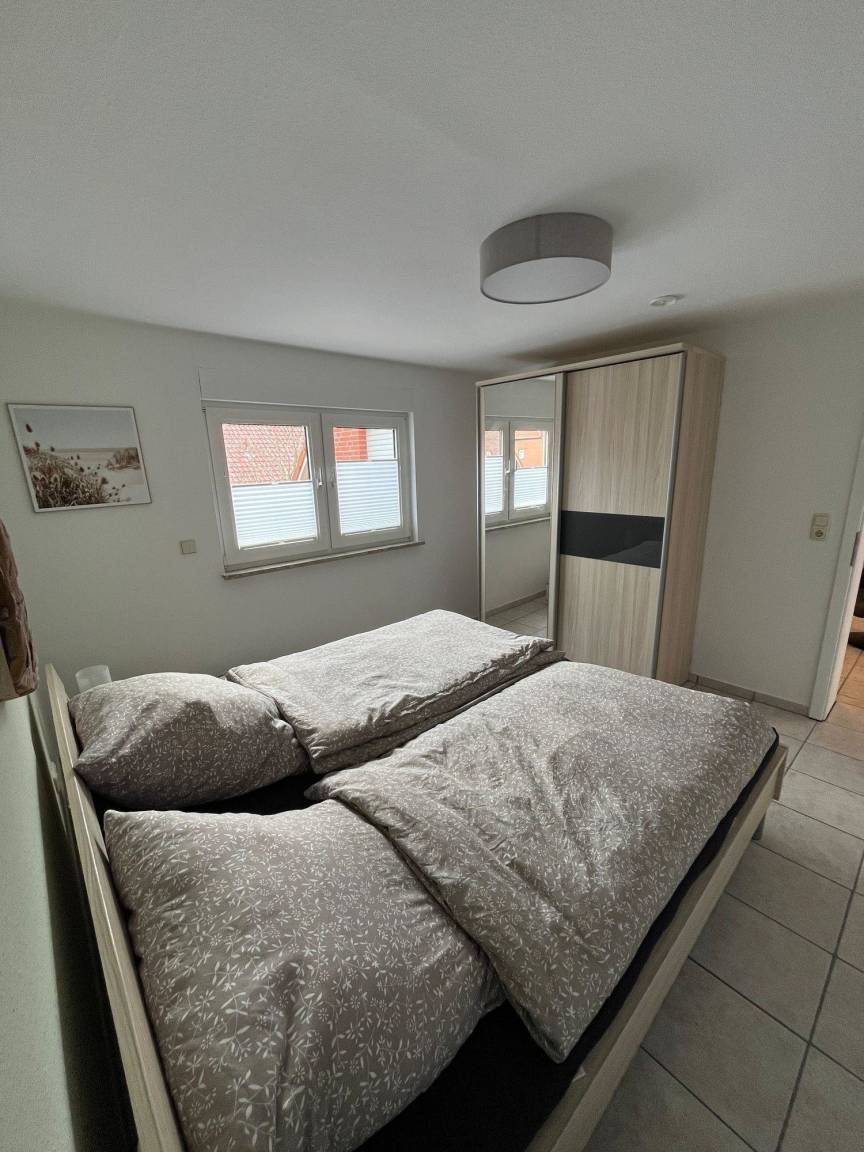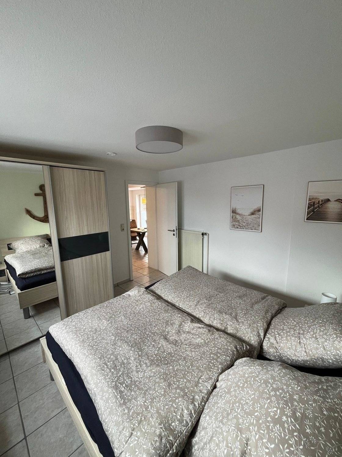 Unsere gemütliche, familienfreundliche Ferienwohnung bietet Platz für bis zu vier Personen plus Kleinkind. Sie verfügt über zwei Schlafzimmer (1x Doppelbett, 2x Einzelbetten), einen einladenden Wohn-/Essbereich, ein Bad mit Fenster, sowie einen großzügigen Balkon. Ein eigener Parkplatz befindet sich direkt vor der Haustür. Die Wohnung wurde im Jahr 2023 renoviert und hochwertig ausgestattet. Zudem steht Ihnen eine Waschmaschine und ein Trockner zur Verfügung. Im Garten befindet sich eine abschließbare Unterstellmöglichkeit für Ihre Fahrräder etc. Für unsere kleinen Gäste befindet sich ein Hochstuhl, Kunststoffgeschirr, sowie ein Kinderreisebett in der Wohnung.
