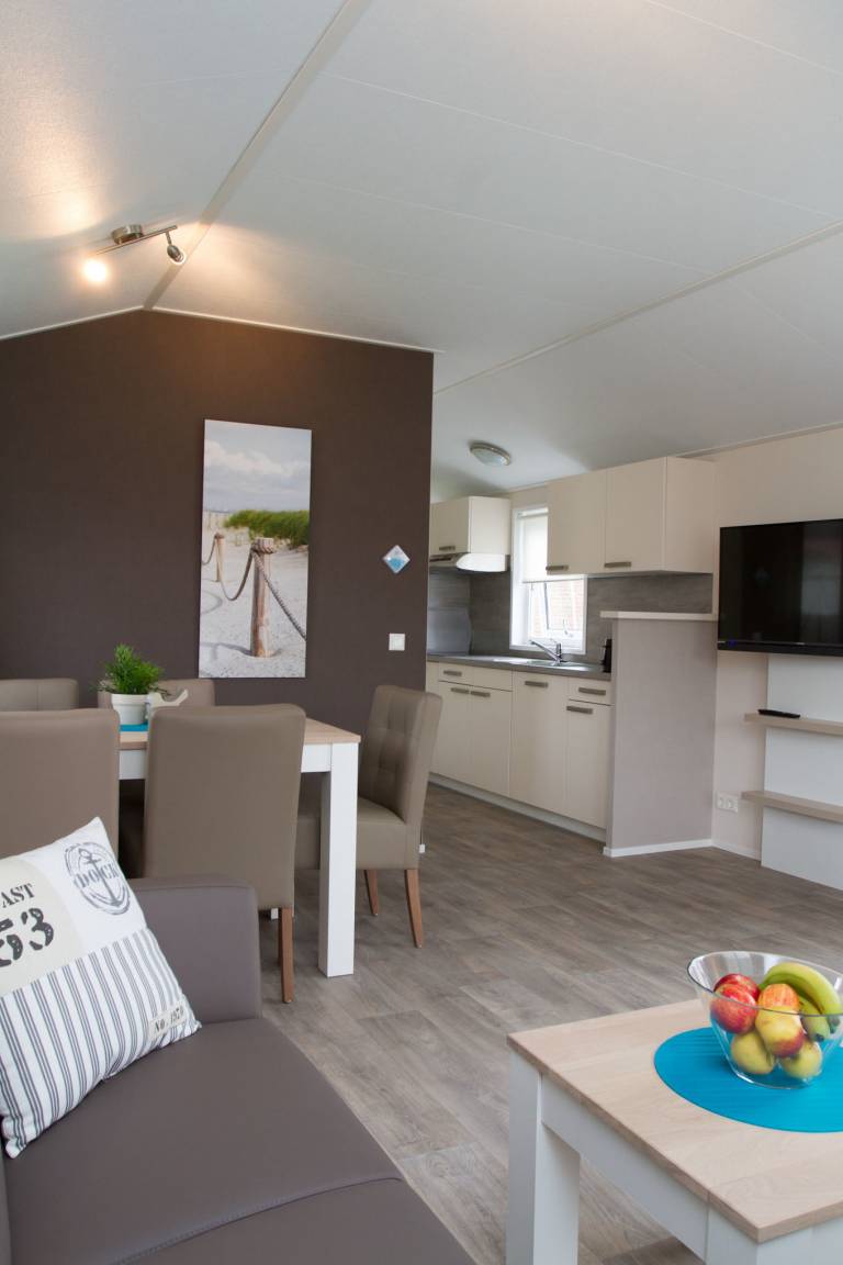 Ferienhaus mit rd. 45m² groß und Platz für bis zu zwei Erwachsene und drei Kindern. 2 Schlafzimmer (eines mit Doppelbett und TV, eines mit Crossbett), 1 Badezimmer. Großer Wohnraum mit Küche, Sitzgelegenheiten und Unterhaltungsmedien (TV). Im Außenbereich gibt es einen Stellplatz für Ihr Auto und die Terrasse lädt zum gemütlichen Verweilen ein.