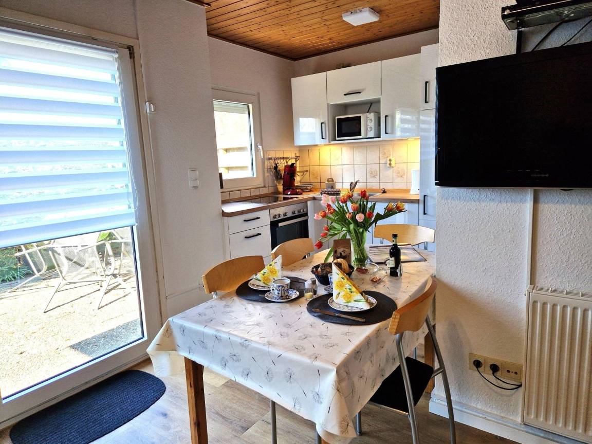 Der Ferienbungalow in Norddeich bietet Platz für bis zu 5 Personen und zeichnet sich durch seine ruhige Lage in einer parkähnlichen Gartenanlage aus. Im großen Wohn-Essraum befinden sich ein Kabel-Fernseher, DVD-Player, Stereoanlage sowie ein Telefon mit kostenlosem DSL und WLAN. Die Schlafräume sind schallgeschützt und bieten Ruhe; einer der Räume ist mit einem Flachbildschirm ausgestattet. Das Badezimmer verfügt über eine bodengleiche Dusche. Im Außenbereich stehen eine Terrasse mit Gartenmöbeln und eine Liegewiese zur Verfügung, die ideal für Grillabende ist. Ein abschließbarer Abstellraum für Fahrräder sowie ein privater Parkplatz sind ebenfalls vorhanden. Bettwäsche und Handtücher können gegen Gebühr hinzugebucht werden. Kleine Hunde sind erlaubt, Katzen jedoch nicht. Die Schlüsselabholung erfolgt in der Norddeicher Str. 55 in Norden.