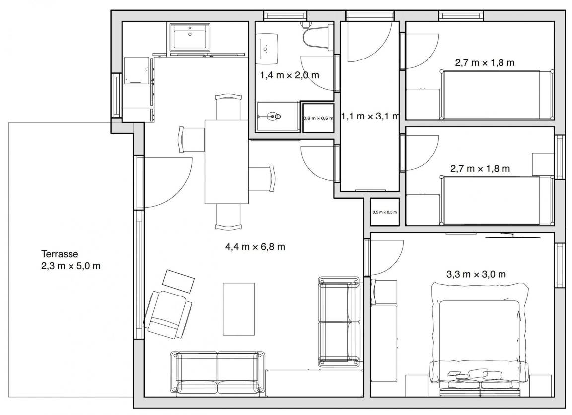 53 m² Ferienhaus ∙ 3 Schlafzimmer ∙ 5 Gäste