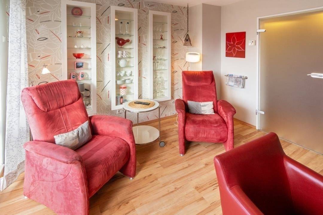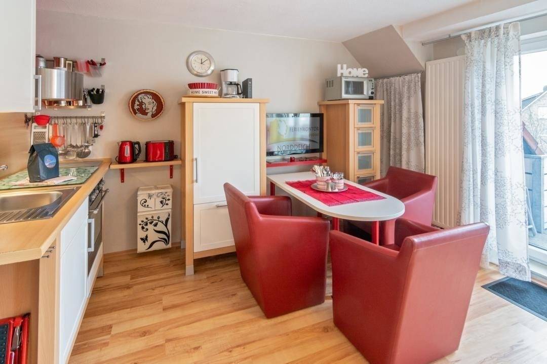 Unsere gemütlich eingerichtete Wohnung befindet sich in der 1. Etage und beeindruckt durch eine harmonische Kombination aus Wohnraum, Essbereich und Küche. Von hier aus haben Sie auch Zugang zu Ihrem eigenen Balkon mit einer ausreichenden Bestuhlung. Geschützt vor fremden Augen können Sie dort Ihre Seele baumeln und sich die frische Seeluft um die Nase wehen lassen.