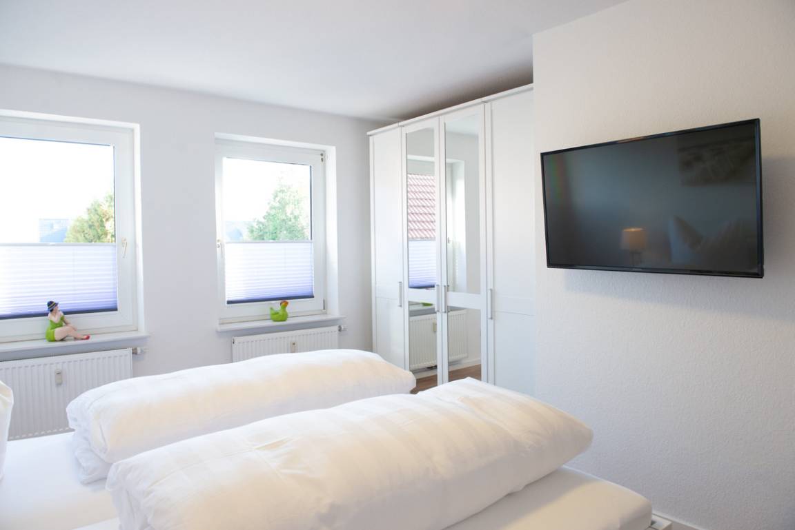 Schlafzimmer mit Doppelbett*Kleiderschrank* Fernseher