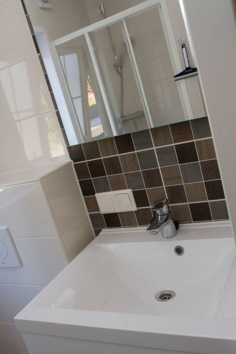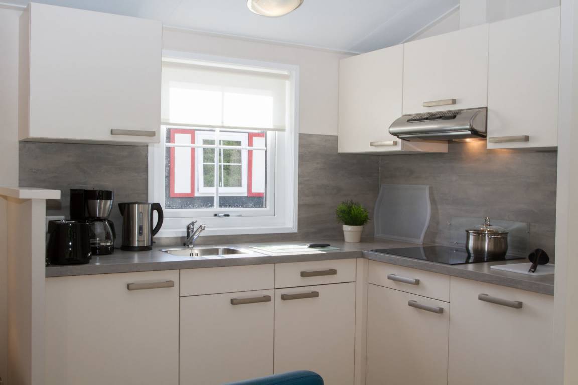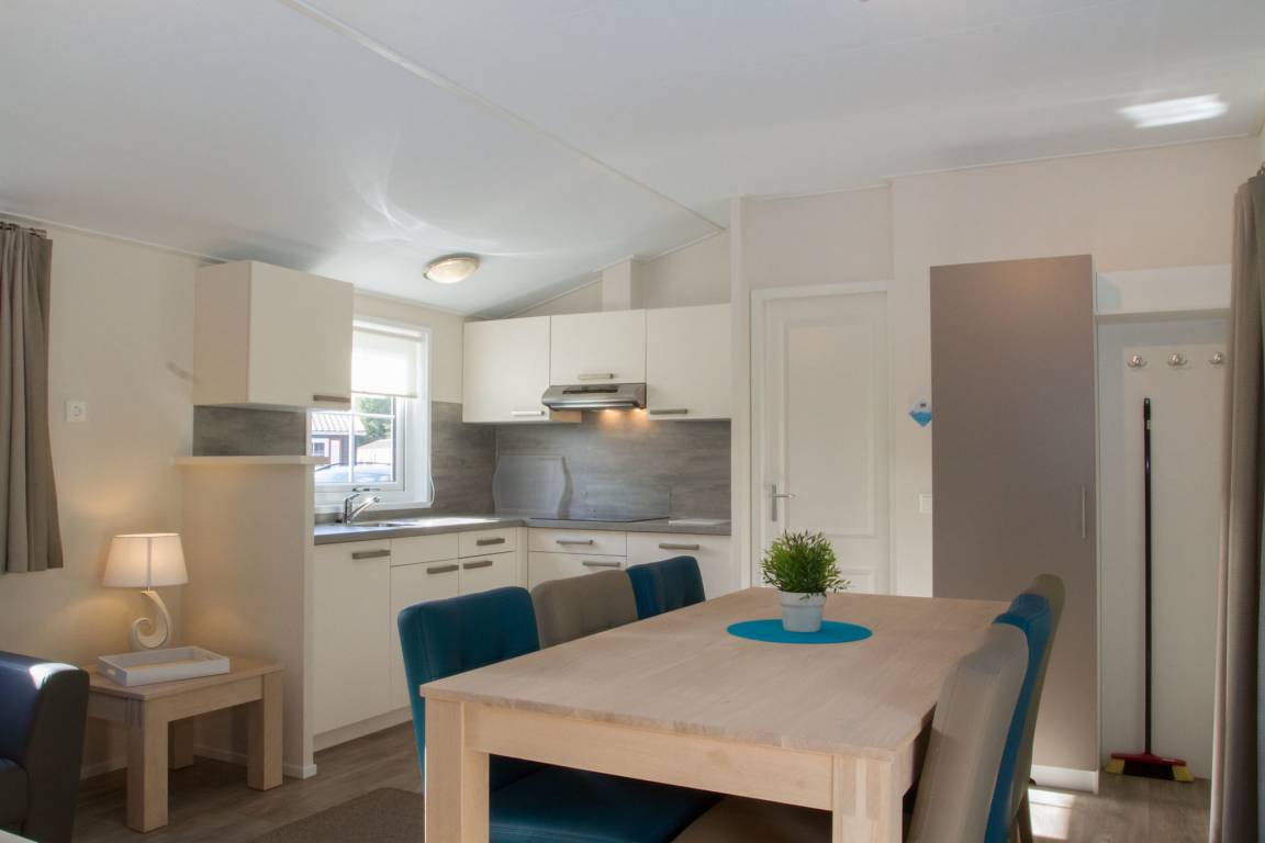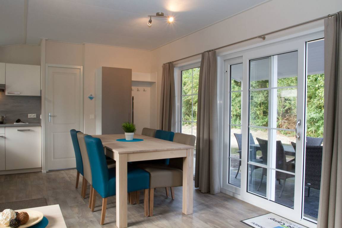 Ferienhaus mit ca.. 50m² und Platz für bis zu sechs Personen. 3 Schlafzimmer (davon 2 mit TV und 1 mal Etagenbett), 2 Badezimmer. großer Wohnraum mit Küche, Sitzgelegenheiten und Unterhaltungsmedien (TV). Im Außenbereich gibt es einen Stellplatz für Ihr Auto und die Terrasse lädt zum gemütlichen Verweilen ein. Die Chalets befinden sich in einem eigenen Parkareal unseres Platzes mit eigener Zufahrt.