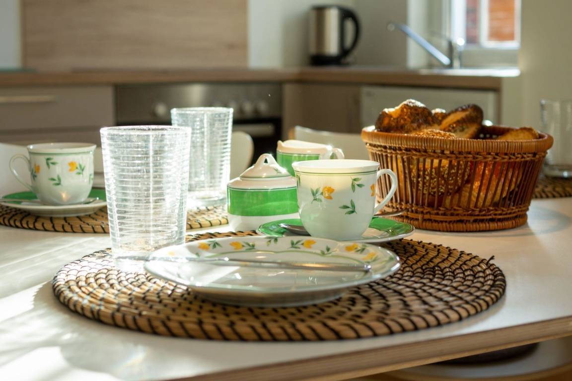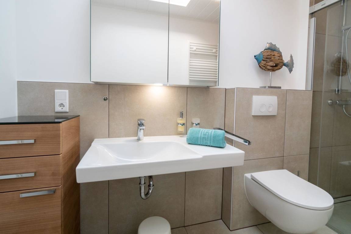 Das exklusive Ferienhaus in Norddeich bietet auf 80 m² Platz für bis zu 5 Personen, einschließlich eines Babys. Der lichtdurchflutete Wohnraum mit angrenzendem Küchenbereich lädt zu gemütlichen Abenden ein. Die voll ausgestattete Küche ermöglicht es, alle notwendigen Mahlzeiten während des Urlaubs zuzubereiten. Es gibt zwei Schlafzimmer mit Boxspringbetten sowie ein weiteres Schlafzimmer mit einem Jugendbett (1,80 m lang). Das neue Duschbad sorgt für einen angenehmen Start in den Tag. Besonderen Komfort bieten Außenjalousien und kostenloses WLAN. Eine Waschmaschine ist gegen eine kleine Gebühr nutzbar. Bettwäsche und Handtücher sind nicht vorhanden, können jedoch kostenpflichtig hinzugebucht werden. Parkmöglichkeiten sind in der Nähe des Hauses durch einen Anwohnerausweis gegeben. Haustiere sind nicht erlaubt, und die Schlüsselabholung erfolgt in der Norddeicher Str. 55 in Norden.
