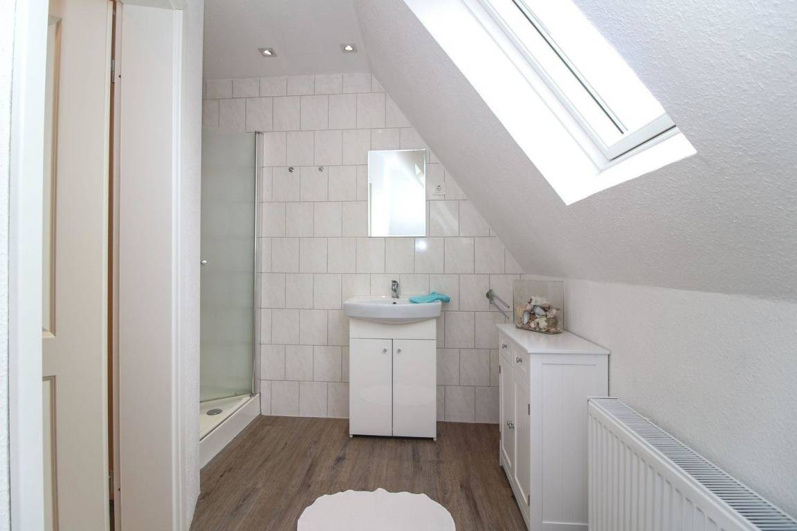 Im Obergeschoss befindet sich das zweite Schlafzimmer mit 2 Einzelbetten (Box-Springbetten) und ein eigenes Bad mit Dusche.