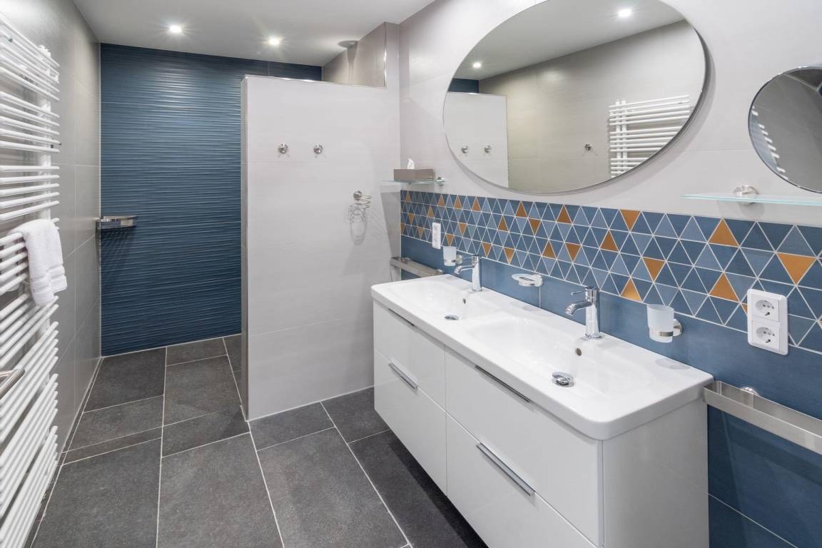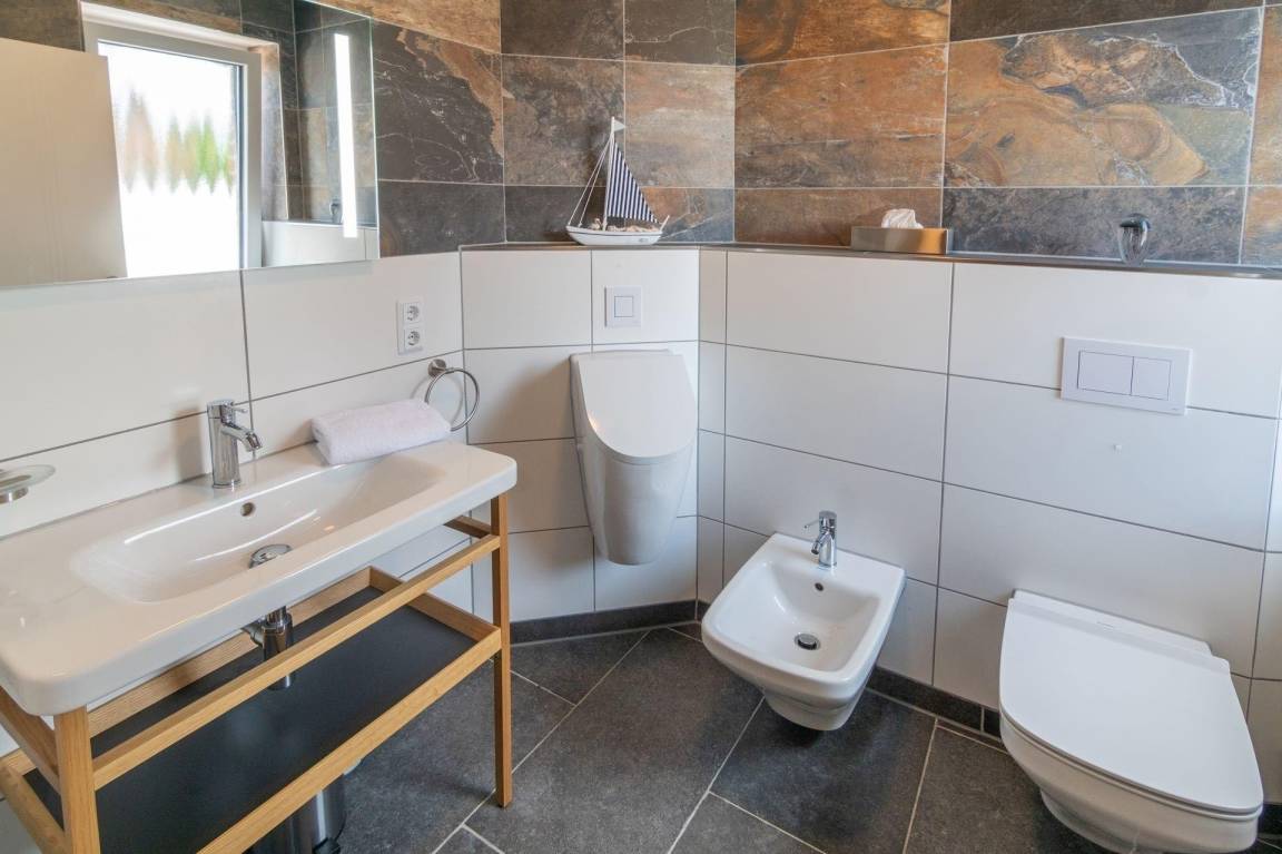 Das exklusive 5-Sterne Ferienhaus in Norddeich bietet bis zu 6 Personen ein luxuriöses Wohnambiente. Der lichtdurchflutete Wohnbereich lädt zum Entspannen ein, während der große Essbereich für gemeinsame Mahlzeiten sorgt. Die moderne Küche ist vollständig ausgestattet mit hochwertigen Geräten, ideal für kulinarische Experimente. Drei komfortable Schlafzimmer fungieren als Rückzugsorte, jedes mit hochwertiger Bettwäsche und eigenem En-Suite Badezimmer. Ein privater Fitnessraum und eine Sauna garantieren Wellness und Erholung. Der beheizte Pool ist zur gemeinschaftlichen Nutzung gedacht und bietet sowohl Erholung als auch sportliche Aktivitäten. Für barrierefreien Zugang sorgt ein privater Fahrstuhl, der alle Ebenen des Hauses verbindet. Kostenloses High-Speed WLAN ist im gesamten Haus verfügbar.