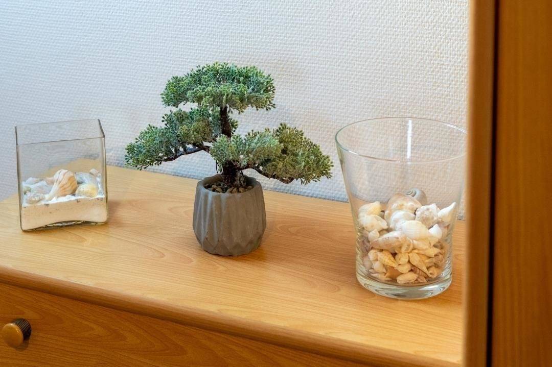 Der Flur ist mit einer Garderobe, einer Schuhablage und einem Ganzkörperspiegel ausgestattet. Als zusätzlichen Komfort bietet der Abstellraum Platz für einige Elektroartikel, ein Bügeleisen mit Bügelbrett, einen Wäscheständer, einen Feuermelder, einen Staubsauger, einen Verbandskasten und Reinigungsmittel. Der Balkon lädt mit einer Sonnenliege, einem Gartentisch, zwei Stühlen und einem Windschutz zum Entspannen ein.