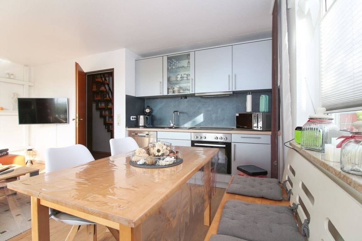 Diese ist voll ausgestattet und bietet zusätzlich einen großen Esstisch.