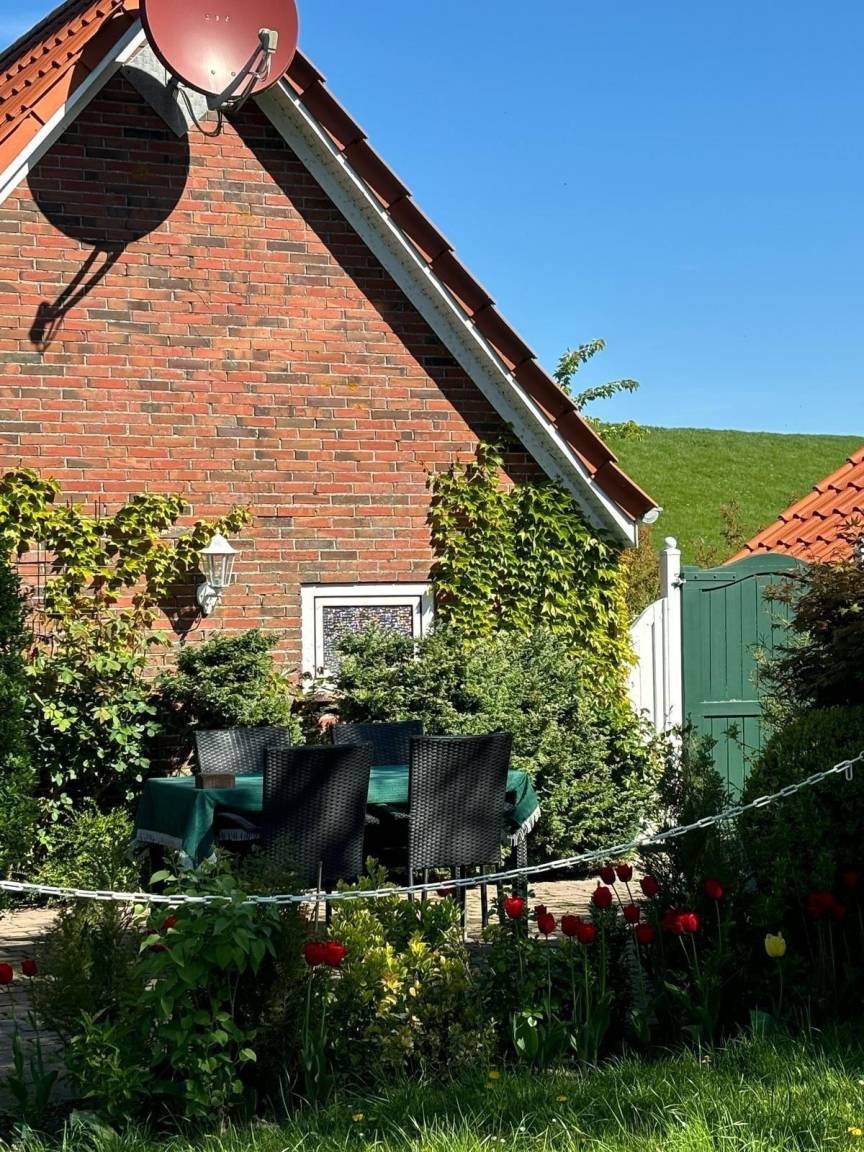 Das Ferienhaus besticht durch seinen charmanten Außenbereich und die einmalige Lage direkt am Deich. Vor dem Haus lädt eine gemütliche Sitzecke zu entspannten Sommerabenden bei einem kühlen Glas Wein ein. Hinter dem Ferienhaus befindet sich eine sonnige Südterrasse, die über einen kleinen, durch eine Kette abgetrennten Gartenteil verfügt. Der Außenbereich ist gemeinschaftlich nutzbar, sodass ein harmonisches Miteinander entsteht. Fliegengitter an den Fenstern sorgen für ungestörten Genuss inmitten der Natur. Gäste können zudem ihr Haustier, einen Hund, mitbringen, während Katzen nicht gestattet sind. Selbstverständlich steht Ihnen auch in diesem Bereich kostenloses WLAN zur Verfügung. Die Schlüsselabholung erfolgt bequem im Büro in der Norddeicher Str. 55 in Norden. Ein perfekter Ort, um Erholung und Entspannung zu finden.