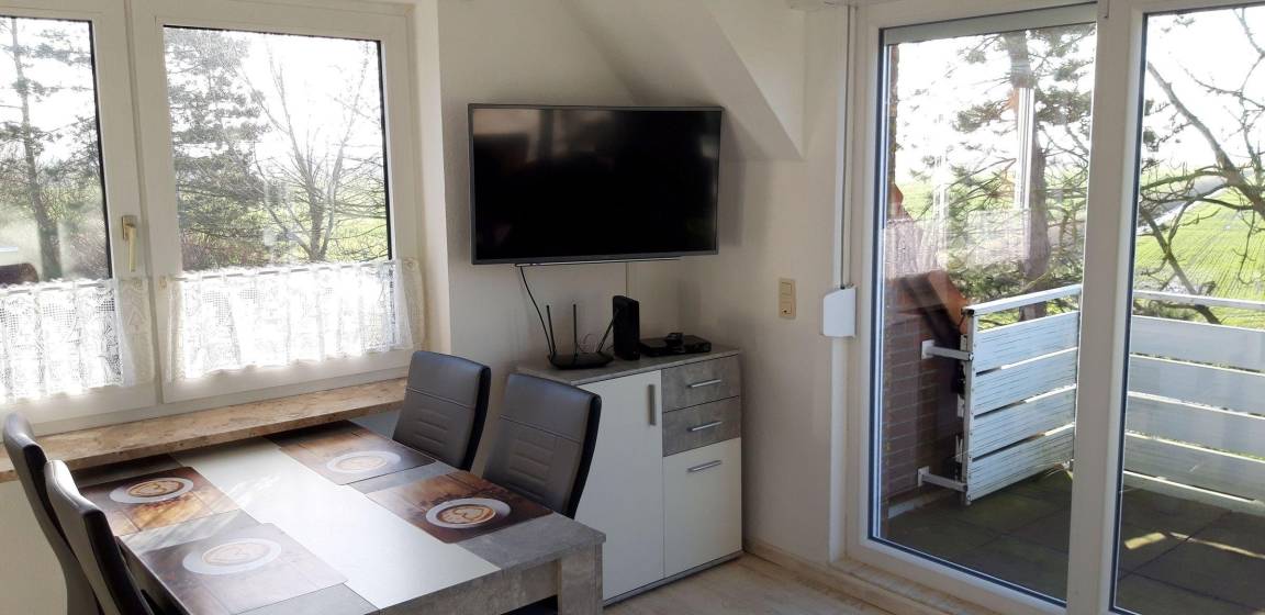 Die moderne Ferienwohnung im ersten Obergeschoss bietet Platz für vier Personen. Wichtige Hinweise: Schlüsselabholung in der Norddeicher Str. 55, Hunde erlaubt, Bettwäsche und Handtücher optional buchbar. Gemeinschaftsangebote: Stellplatz, WLAN, Fahrradraum.