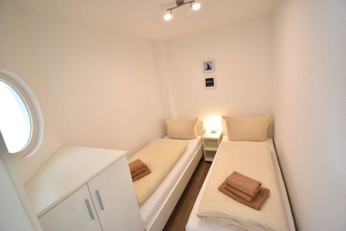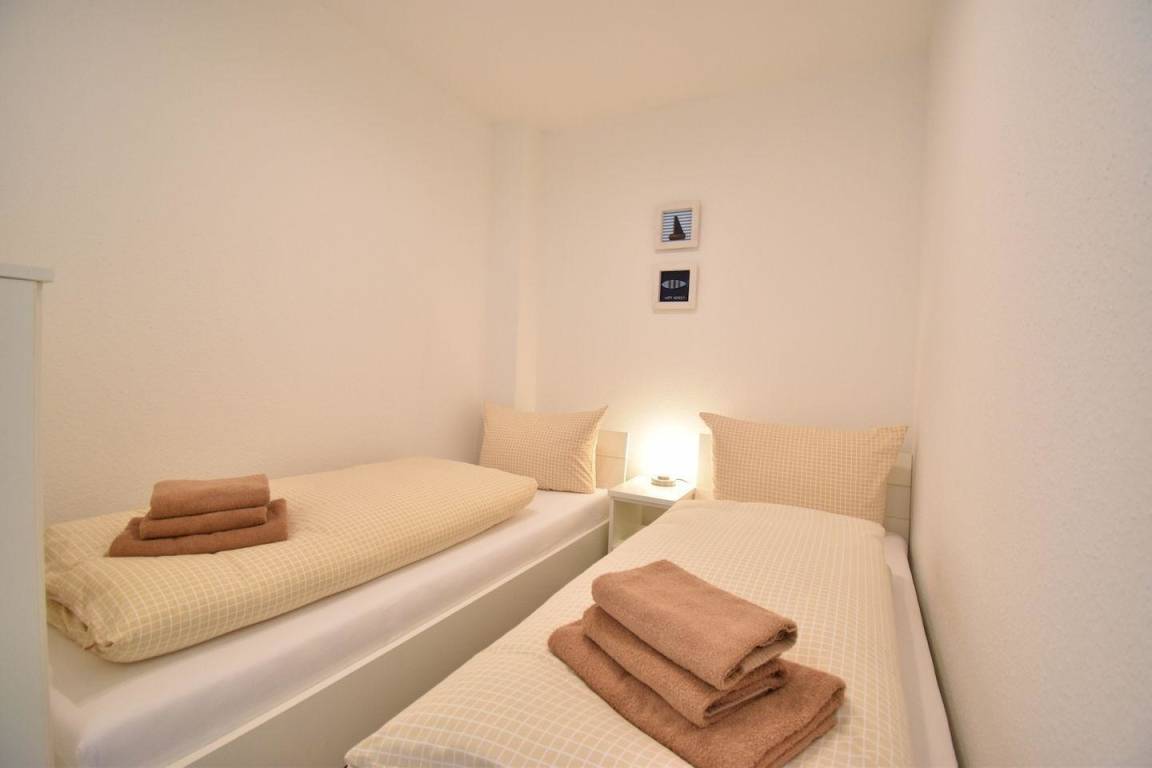 Die Wohnung verfügt über 2 Schlafräume, eines mit einem Doppelbett und das zweite mit zwei Einzelbetten.