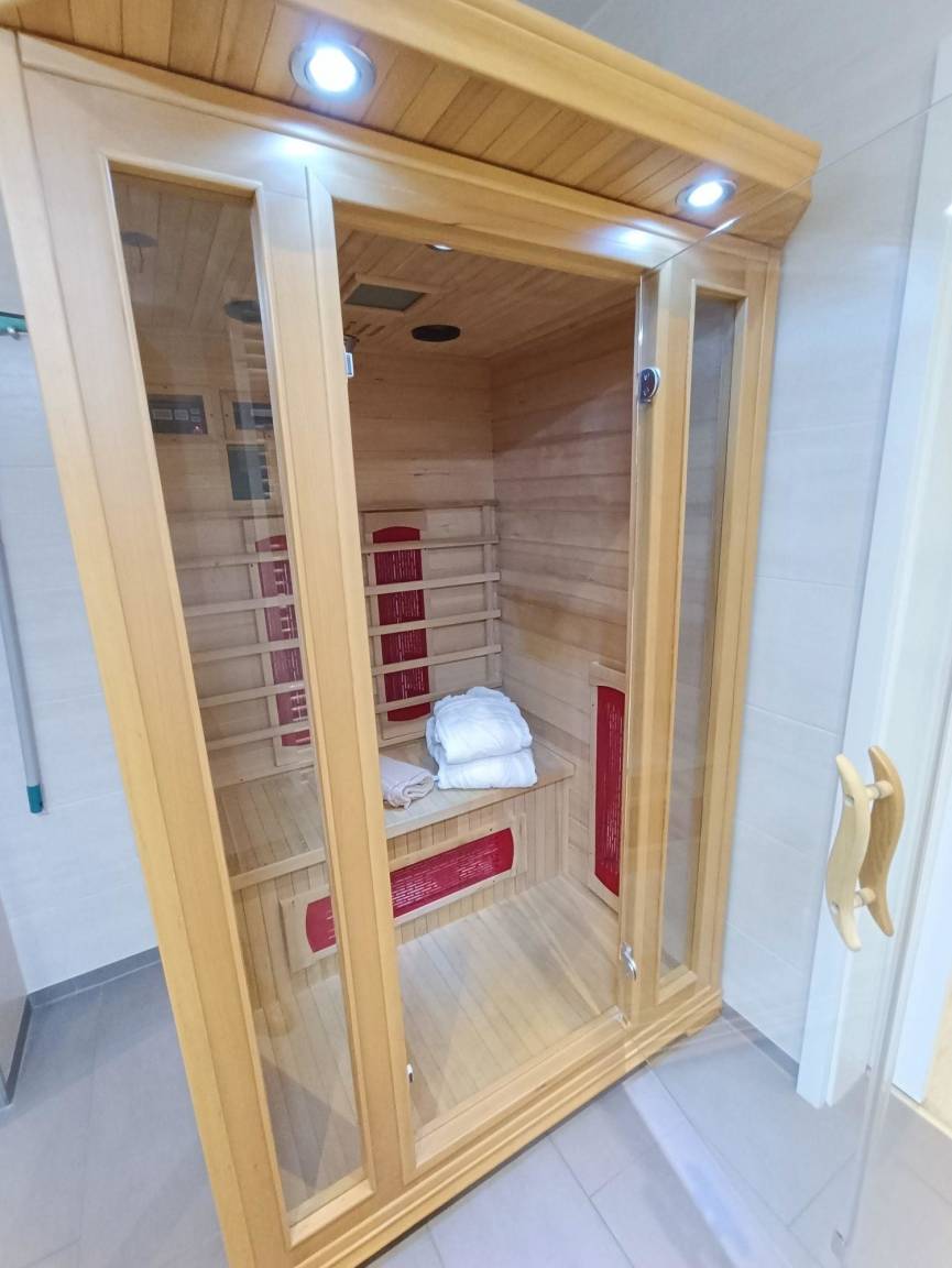 Bei der Sauna handelt es sich um eine Infrarotkabine