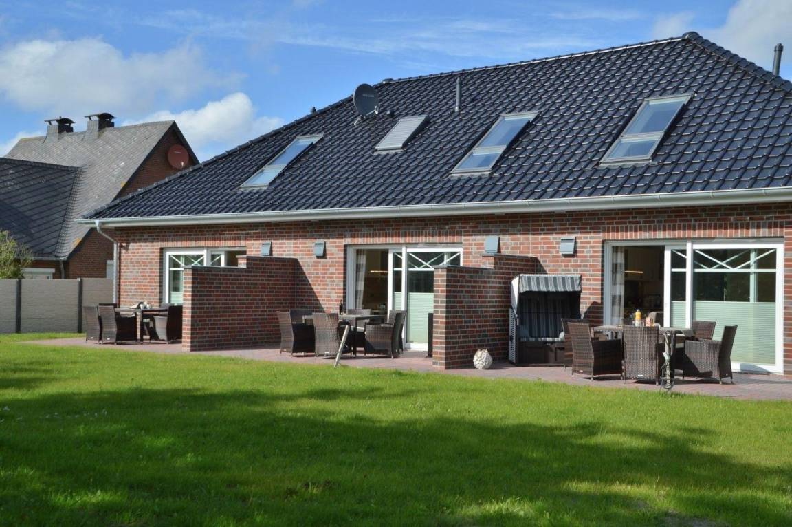 Auf der Terrasse warten bereits gemütliche Rattangartenmöbel, ein Strandkorb, ein Holzkohlegrill und ein Sonnenschirm auf Sie.