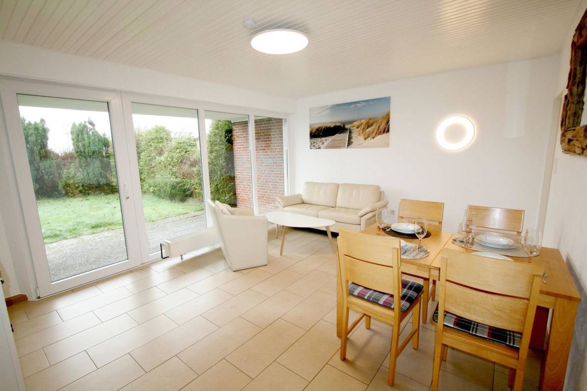 Der ruhige, strandnahe Bungalow in Norddeich bietet auf 65 m² Platz für bis zu 4 Personen, modernste Ausstattung, eine teilüberdachte Terrasse und ist ideal für entspannte Urlaubstage mit Hund.