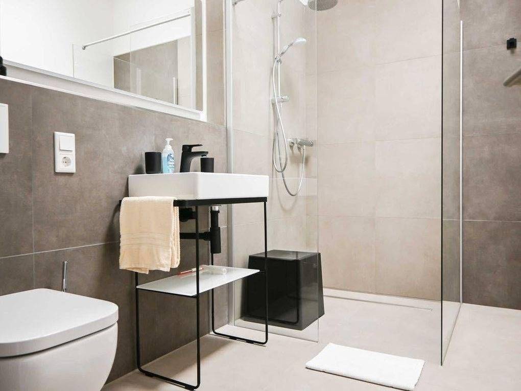 Die offene, voll ausgestattete Küche verfügt über ein Ceran-Kochfeld, Backofen, Spülmaschine und Kühlschrank, ergänzt durch einen einladenden Essbereich. Das Badezimmer bietet eine bodengleiche Dusche und moderne Sanitäranlagen. Zur weiteren Ausstattung zählen WLAN, TV und Fußbodenheizung. Ein Fahrstuhl erleichtert den Zugang zur Unterkunft.