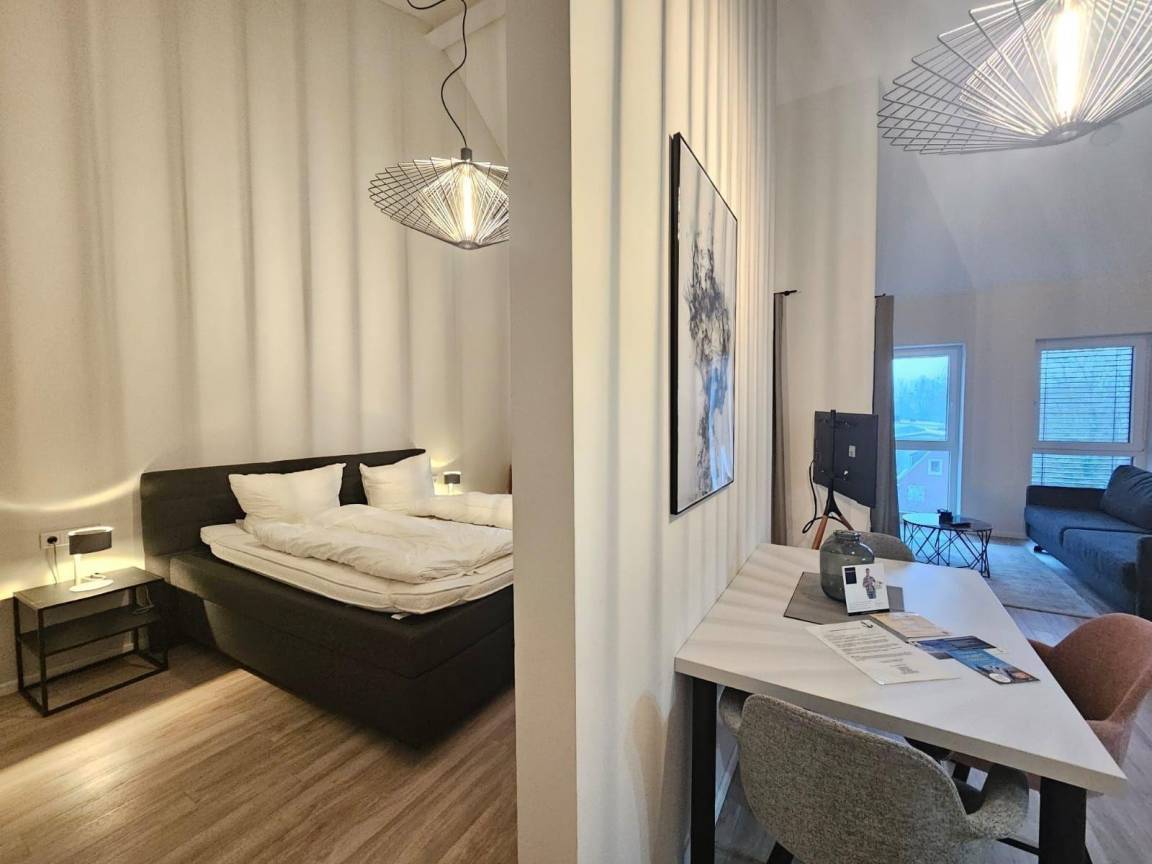 Die moderne Ferienwohnung "Appartment Teezauber" mit 52 m² bietet Platz für bis zu 3 Personen und verbindet stilvollen Wohnkomfort mit einem Teefabrik-Flair. Das ruhige Schlafzimmer ist mit einem komfortablen Doppelbett und Verdunkelung ausgestattet, während der Wohnbereich ein Schlafsofa für zusätzliche Gäste bereithält.