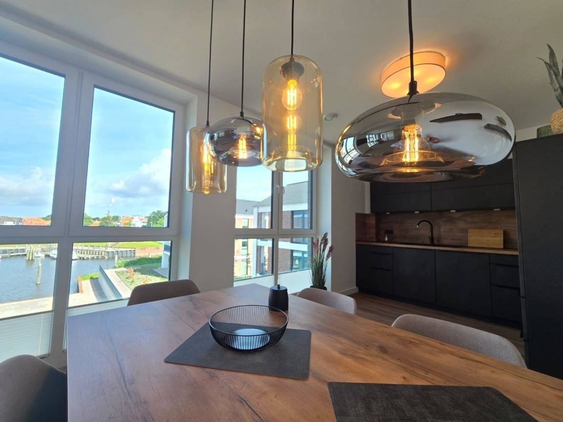Die Ferienwohnung Hafenblick bietet modernen Komfort, private Sauna und traumhaften Hafenblick für bis zu 6 Personen – perfekt für entspannte Urlaubstage an der Nordsee!