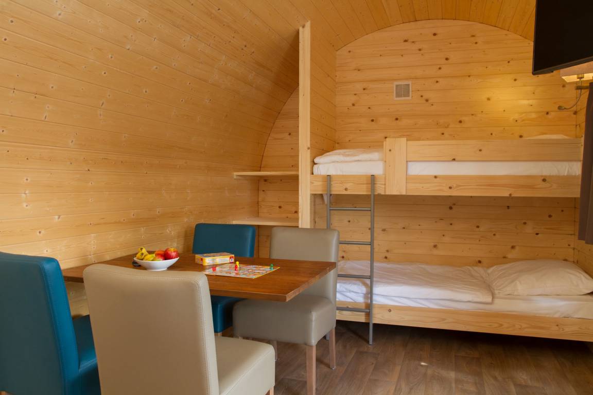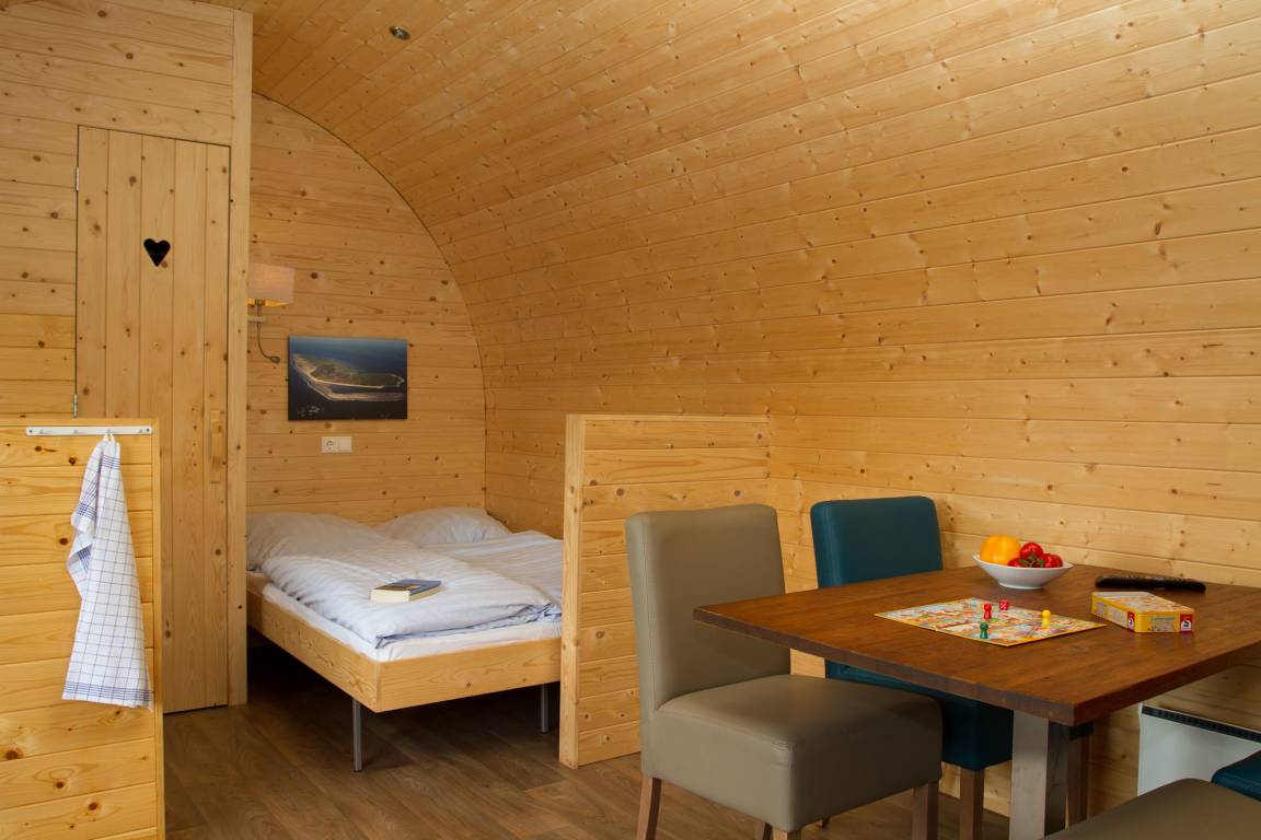 Klein und fein ist die Devise dieser kompakten Holzhäuser für den Urlaub. Das heißt in keinem Fall, dass man auf Komfort verzichten muss. In den Nordsee-Wellen findet man alles was den Urlaub angenehm gestalten lässt. Eine Toilette, ein kleines Waschbecken, Sitzgelegenheiten, zwei kleine Kochplatten, einen Fernseher, eine Kaffeemaschine und eine Elektroheizung. Weitere sanitäre Einrichtungen wie z. B. Duschen etc., finden Sie in kurzer Entfernung in unserem Sanitärgebäude. Die großen Nordseewellen bieten Platz für zwei oder bis zu vier (zwei Erwachsene, zwei Kinder) Personen. Diese Art der Unterkunft ist ideal für Aktivurlauber oder all jene, die den direkten Kontakt zur Natur suchen.