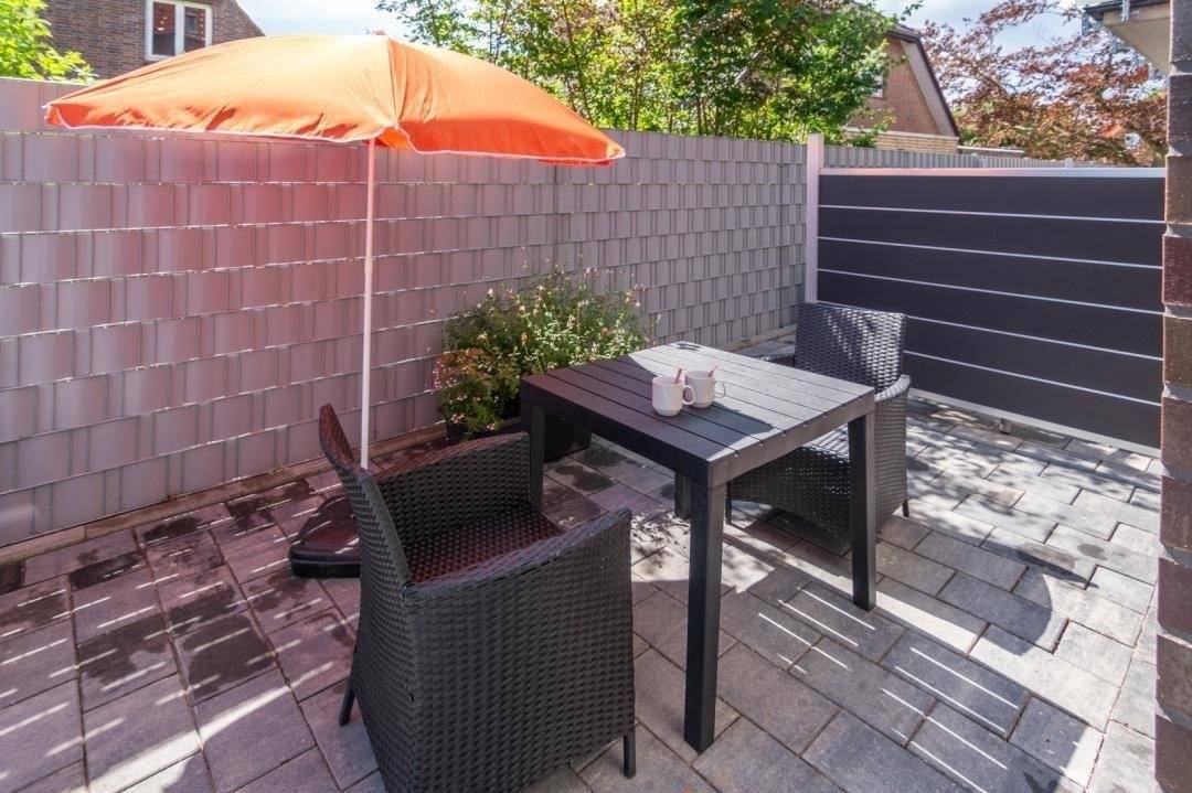 Genießen Sie an sonnigen und warmen Tagen die Terrasse mit einer kleinen Sitzecke und Sonnenschirm.