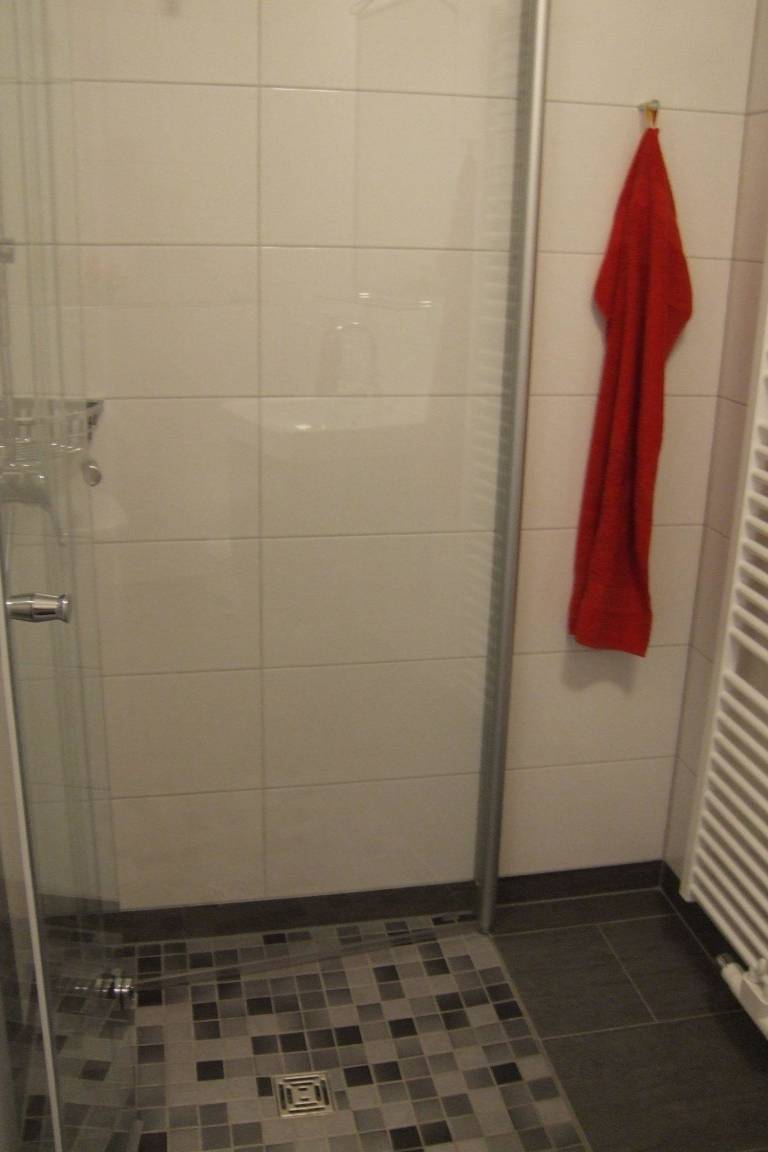 Das Badezimmer ist mit Dusche, Fön, sowie Badezimmerschrank ausgestattet.