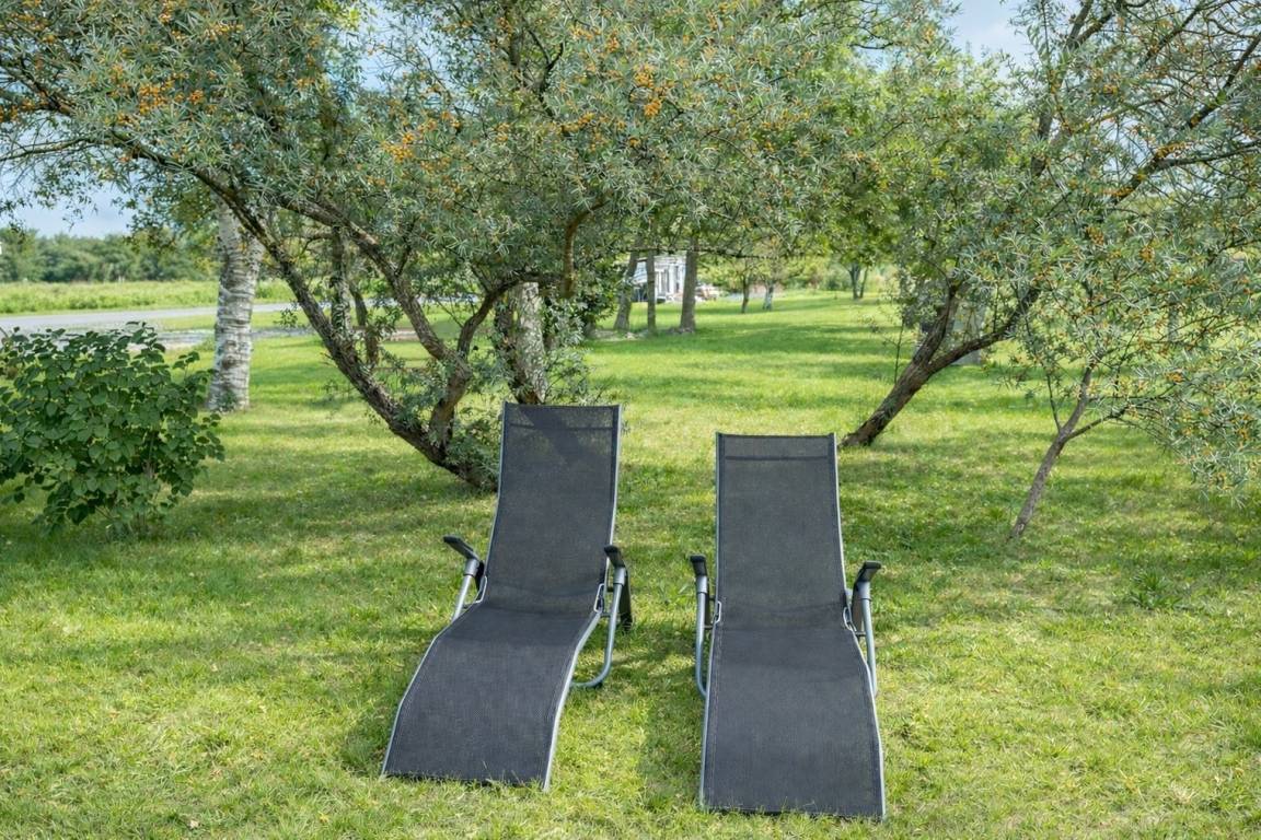 Auf der großen Holzterrasse haben Sie den ganzen Tag Sonne. Zur Ausstattung gehören: