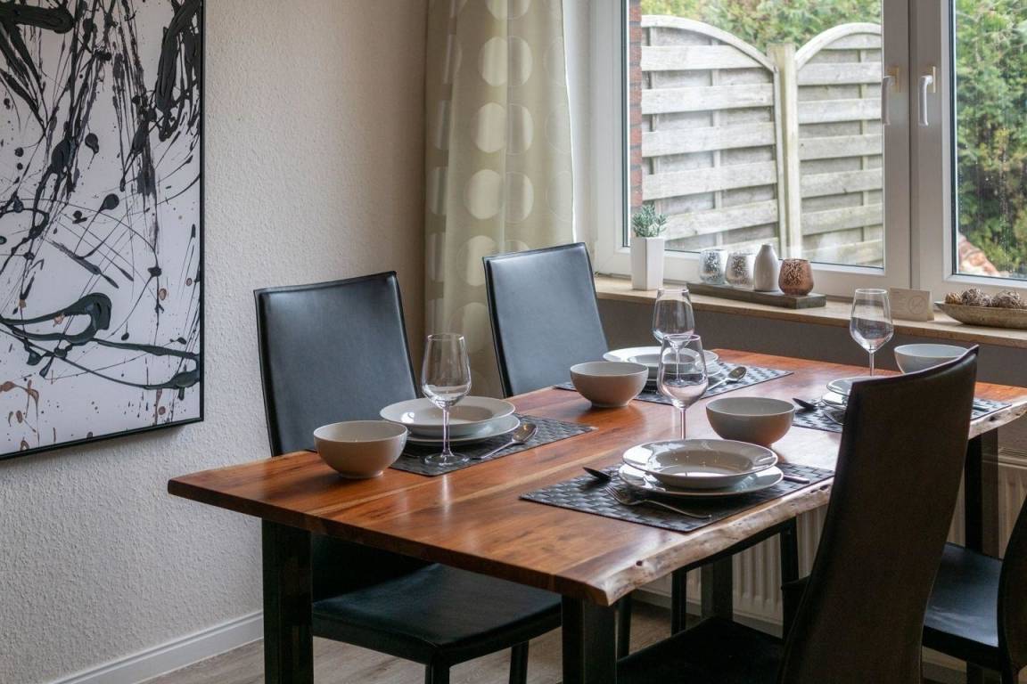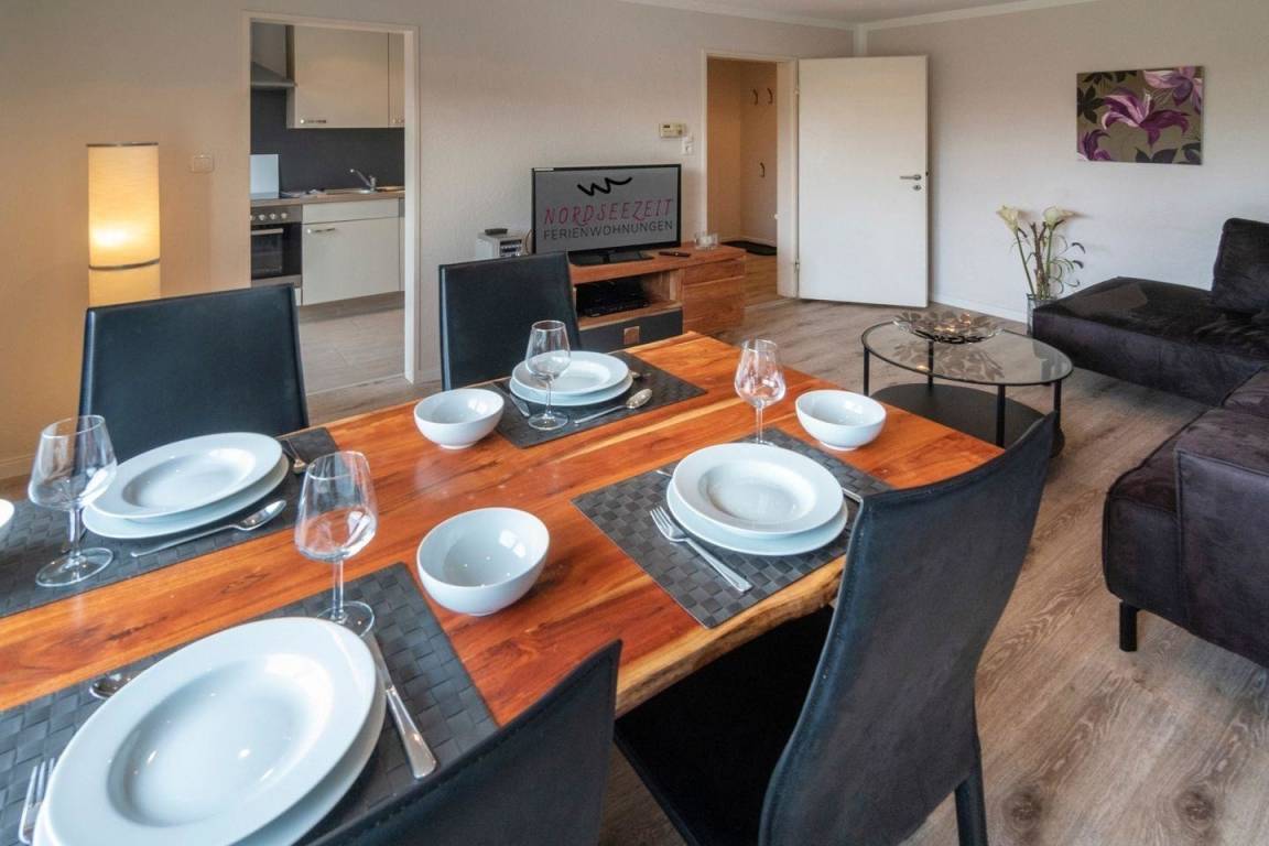 Das moderne Ferienhaus in Norddeich bietet auf 65 m² Platz für bis zu 4 Personen, mit lichtdurchflutetem Wohnbereich, voll ausgestatteter Küche und traumhaftem Garten für entspannte Urlaubsabende.