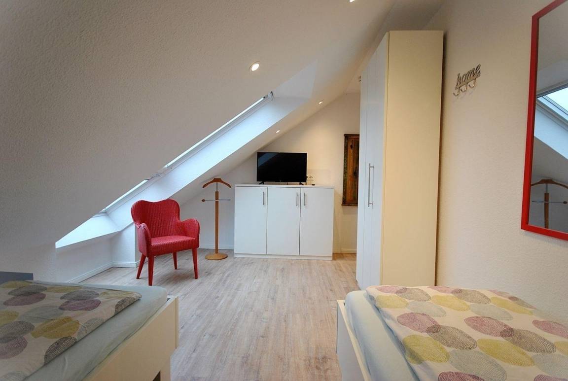 Im OG sind zwei weitere Schlafzimmer; jeweils mit Einzelbetten und einem weiteren Duschbad.