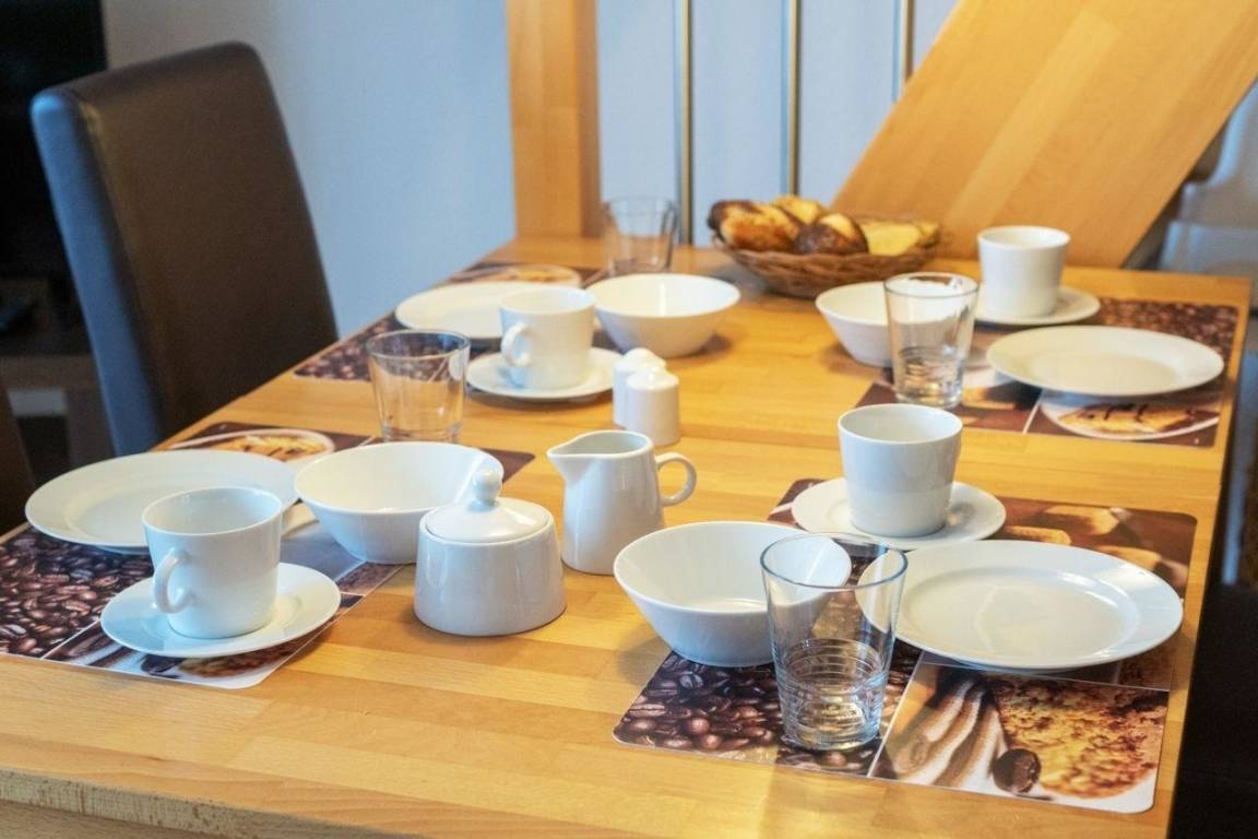 Die Einbauküche der Wohnung wurde komplett ausgestattet, so dass Sie sich hier ganz unkompliziert selbst versorgen können. Backofen und Herd stehen ebenso zur Verfügung wie ein Kühlschrank, eine Kaffeemaschine sowie eine Mikrowelle im Schrank. Ein praktischer Geschirrspüler erleichtert den Abwasch. Geschirr, Besteck, Glaswaren und Küchenutensilien sind in ausreichender Zahl vorhanden.