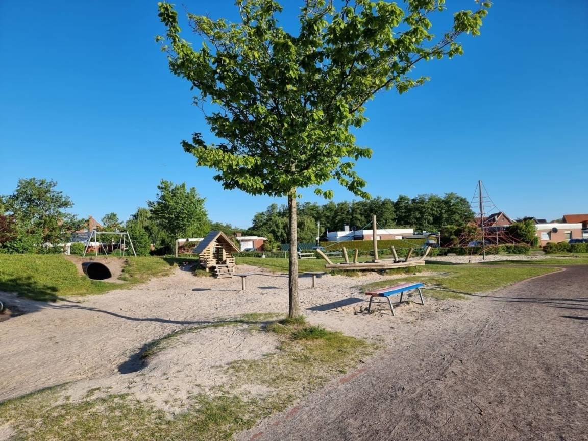 Die Ferienwohnung Jantje im Mienhus in Norddeich bietet einen einladenden Außenbereich, der ideal für erholsame Stunden im Freien ist. Gäste können sich auf eine eigene Terrasse mit Sitzmöglichkeiten freuen, die perfekt für entspannte Frühstücke oder gemütliche Abende in der frischen Nordseeluft geeignet ist. Hinter dem Haus erstreckt sich eine großzügige Grünfläche, die Kindern viel Raum zum Spielen bietet. Zudem stehen eine gemeinschaftliche Terrasse mit Gartenmöbeln sowie zwei Grills für gesellige Grillabende zur Verfügung. Zu beachten ist, dass Hunde im Spielbereich aus Rücksicht auf die Kinder nicht erlaubt sind. Dieser Außenbereich ergänzt die zentrale Lage der Wohnung, die nur wenige Minuten vom Strand und dem Ortskern entfernt ist, und schafft somit eine ideale Atmosphäre für einen entspannten Nordseeurlaub.