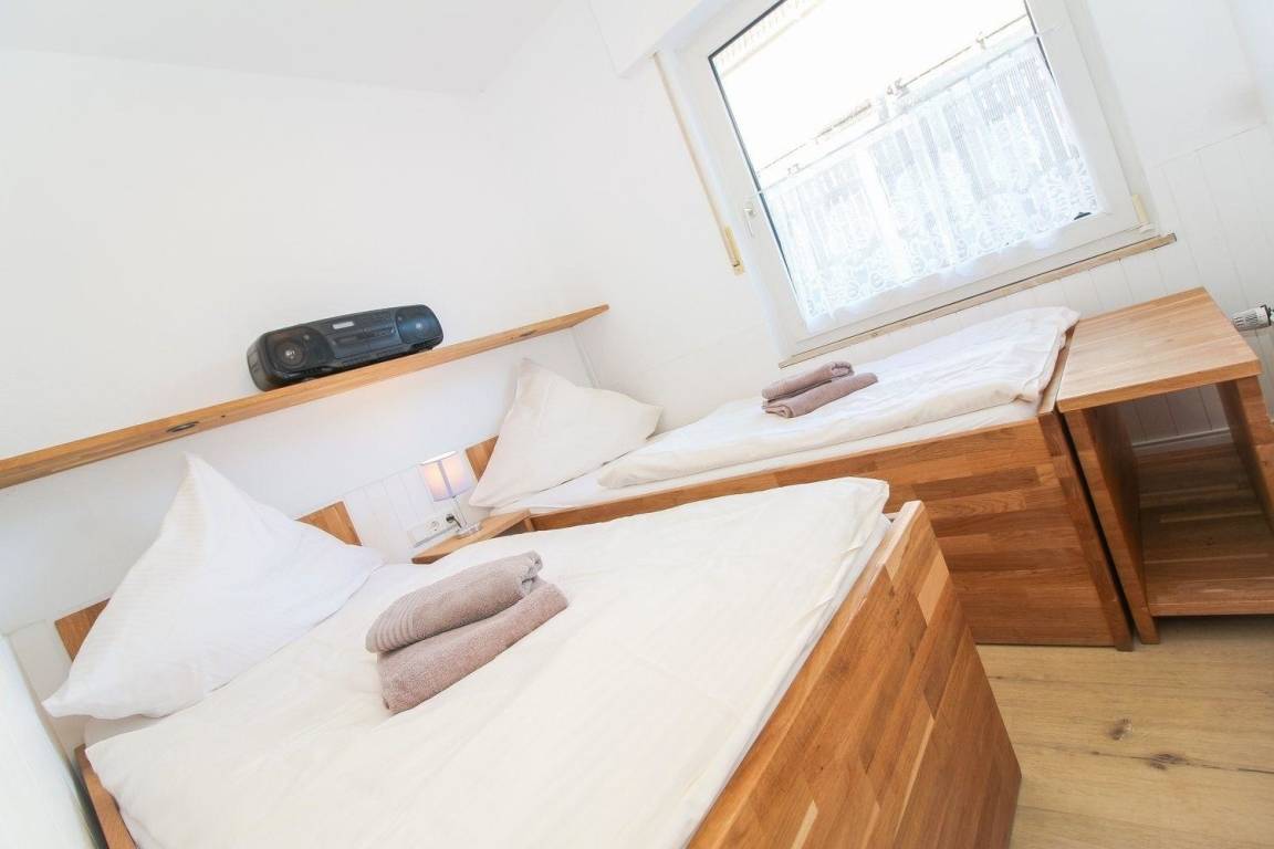 Im Erdgeschoss befindet sich das erste Schlafzimmer mit 2 Einzelbetten und das Gäste-WC.