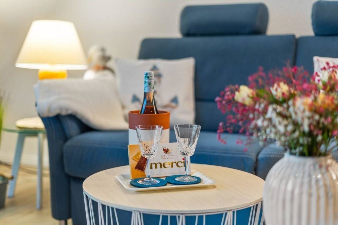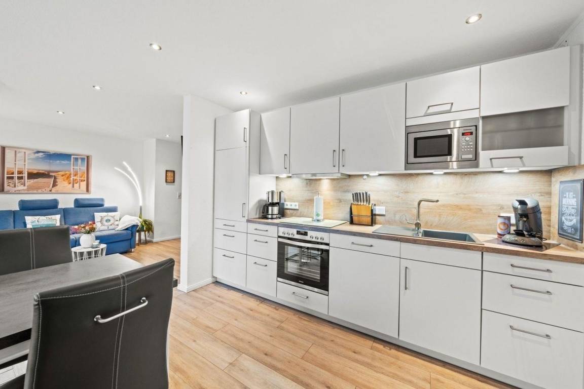Die Wohnung ist modern eingerichtet. Sie hat Fußbodenheizung und in allen Räumen in die Decke eingelassene Spots zur Beleuchtung. Durch die hochwertige und harmonisch aufeinander abgestimmte Einrichtung werden Sie sich in der Wohnung Am Nordmeerstrand wohlfühlen.