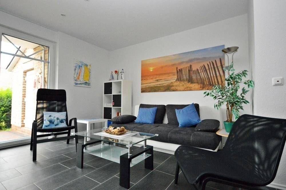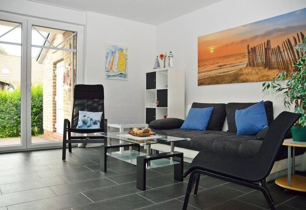 Der Wohn-/Essbereich bietet neben einem gemütlichen Sofa, Sessel und Couchtisch auch einen bequemen Fernsehsessel für gesellige Stunden. Selbstverständlich steht Ihnen neben kostenlosem WLAN auch ein Flachbildschirm (SAT-Empfang), ein DVD-Player mit einigen DVDs und etlichen Musik-CDs zur Verfügung. Neben mehreren Reiseführern über Ostfriesland finden Sie hier auch Leseliteratur sowie etliche Spiele für groß und klein. In einer umfangreichen Infomappe sind Ausflugsmöglichkeiten in Ostfriesland sowie aktuelle Infos über Norden/Norddeich bereitgestellt.