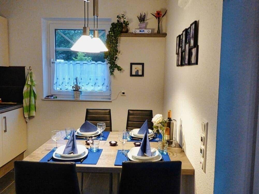 Diverse Einkaufsmöglichkeiten sind bequem zu Fuß erreichbar. Aufgrund der Lage werden Sie bereits beim Frühstück von der Sonne verwöhnt. Die Wohnung ist modern eingerichtet und lädt zum Verweilen und Wohlfühlen ein. Sie verfügt über einen hellen Koch- und Essbereich, der mit einer modernen Küchenzeile und einem Sitzbereich für 4 Personen eingerichtet ist. Die Küche ist gut ausgestattet und verfügt neben einer Spülmaschine, einer Mikrowelle, einem Wasserkocher und einer Kaffeemaschine zusätzlich über eine Senseo-Padmaschine, einen Eierkocher, Radio sowie weiterem Zubehör.