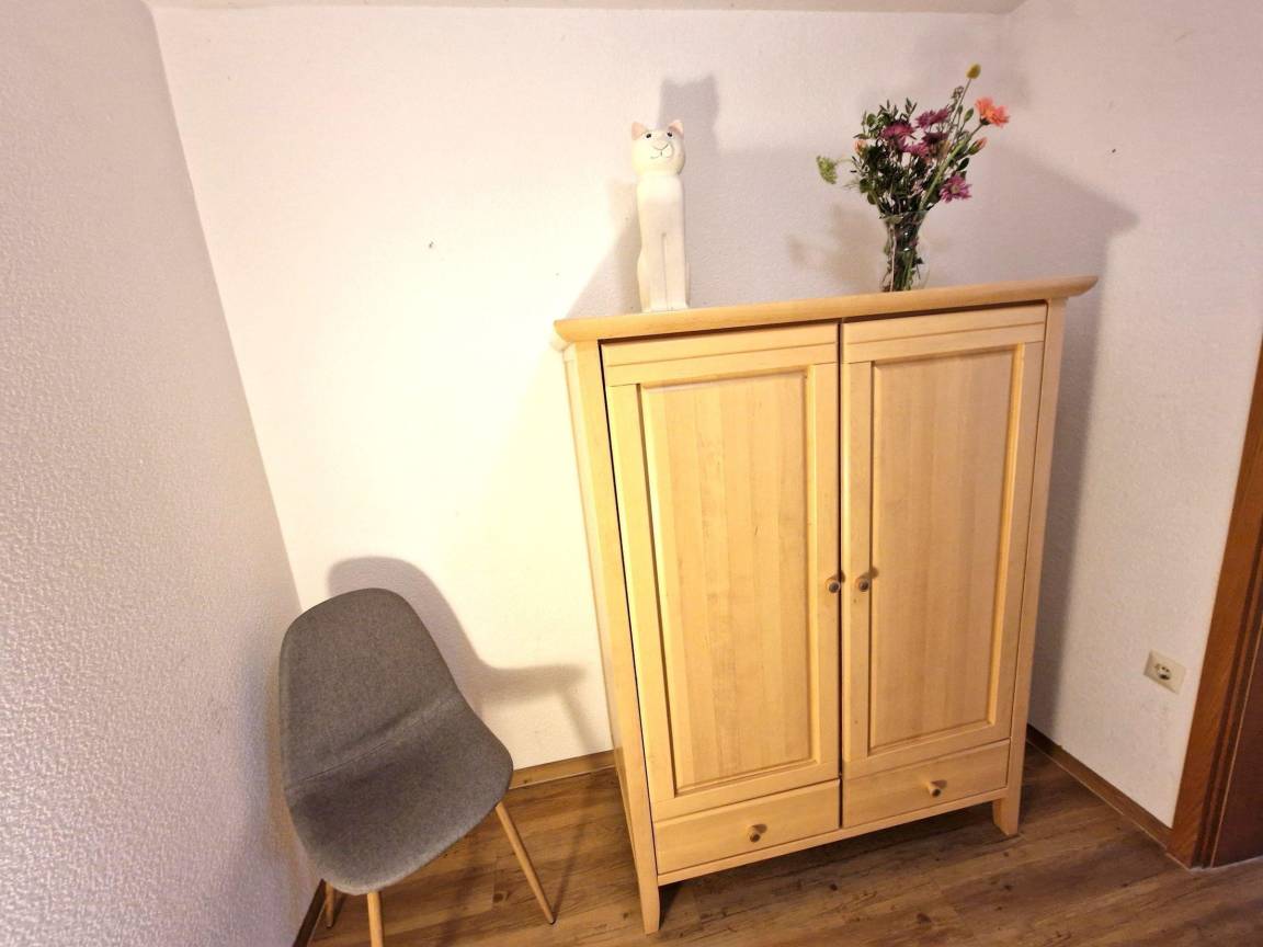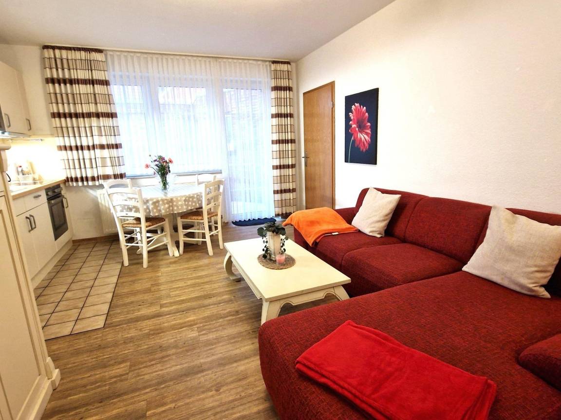 Die Ferienwohnung bietet ein ansprechendes und modernes Ambiente, ideal für erholsame Tage. Mit zwei Schlafzimmern ausgestattet, findet sich hier ein Doppelbett und ein Einzelbett, die optimalen Komfort für bis zu drei Gäste gewährleisten. Die offene Küche ist mit einem Elektro- und Gasherd, Backofen, Mikrowelle, Kühlschrank, Kaffeemaschine, Toaster sowie Geschirr und Besteck ausgestattet, was das Zubereiten von Mahlzeiten zum Vergnügen macht. Das Duschbad bietet einen hygienischen Rückzugsort. Für Unterhaltung sorgt der TV in der Wohnsituation. Internet mit WLAN steht zur Verfügung, während die allergikergeeignete Ausstattung zusätzlichen Komfort bietet. Ein Esstisch und ein gemütliches Sofa laden zum Verweilen ein. Zudem steht ein Parkplatz sowie eine Waschmaschine zur Verfügung. Die Heizung sorgt in jeder Jahreszeit für wohlige Wärme. Die Ferienwohnung ist eine ideale Wahl für unvergessliche Urlaubstage.