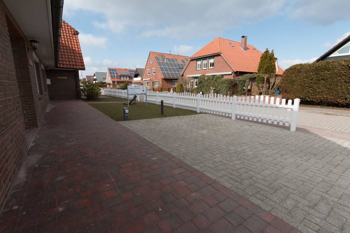 Das Ferienhaus Norddeich bietet eine moderne Erdgeschosswohnung mit einer großzügigen, sonnigen Terrasse, die mit hochwertigen Gartenmöbeln, einem Sonnenschirm und einem Grill ausgestattet ist. Die Terrasse ist ideal für entspannte Frühstücke in östlicher Ausrichtung. Der Außenbereich umfasst zudem einen großen, abschließbaren Gartenhaus, in dem Fahrräder sicher untergebracht werden können und E-Bikes an mehreren Steckdosen kostenlos aufgeladen werden können. Die Appartementanlage befindet sich in einer ruhigen Sackgassenlage, lediglich 50 Meter von der Norddeicher Straße entfernt, wo Restaurants, Cafés und Geschäfte zu finden sind. Ein privater, beleuchteter PKW-Stellplatz mit Ladesäulen für Elektro- und Hybridfahrzeuge ist ebenfalls vorhanden. Gäste haben zusätzlich Zugang zu kostenlosen Bollerwagen und einer Haus-Bibliothek. Hunde sind willkommen, während Katzen nicht gestattet sind. Bettwäsche und Handtücher können optional hinzugebucht werden.