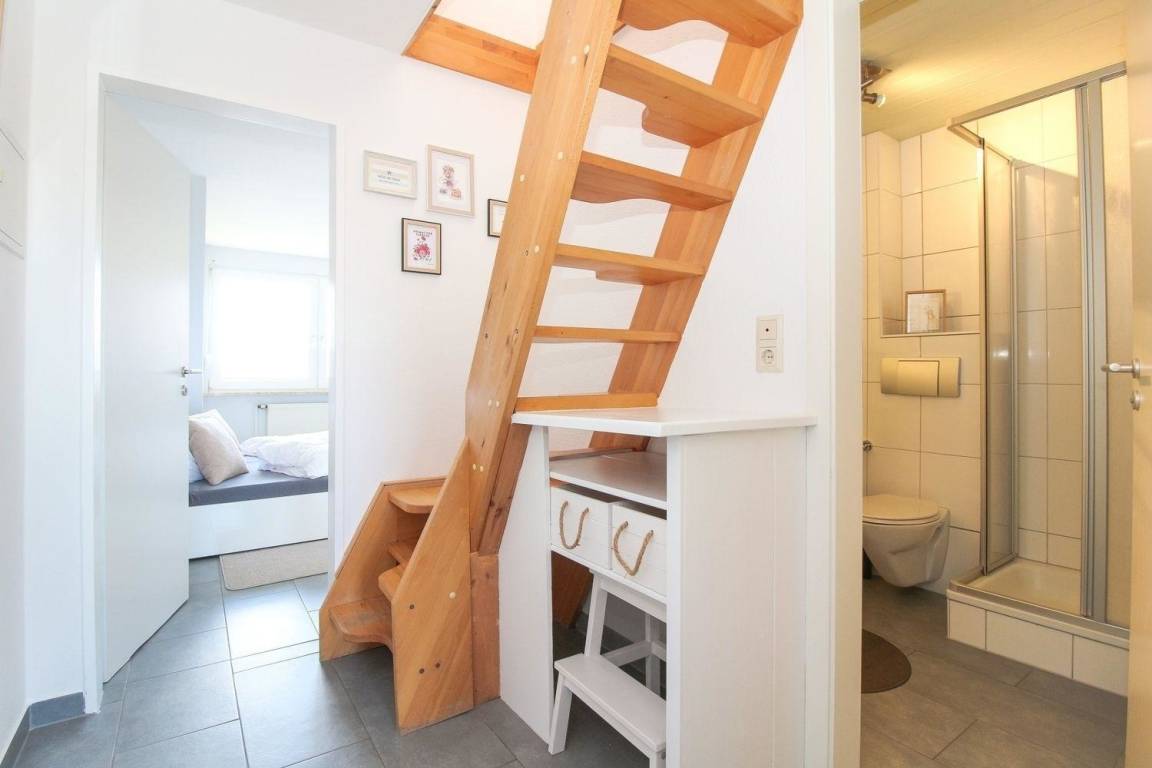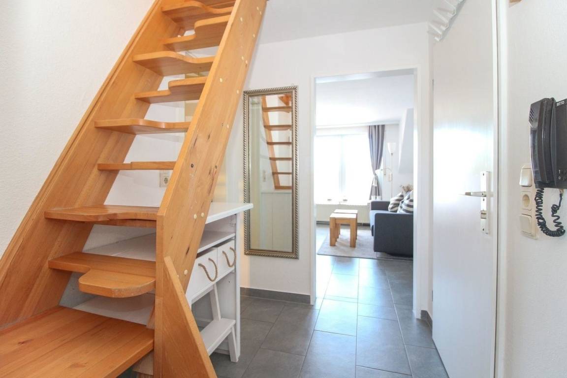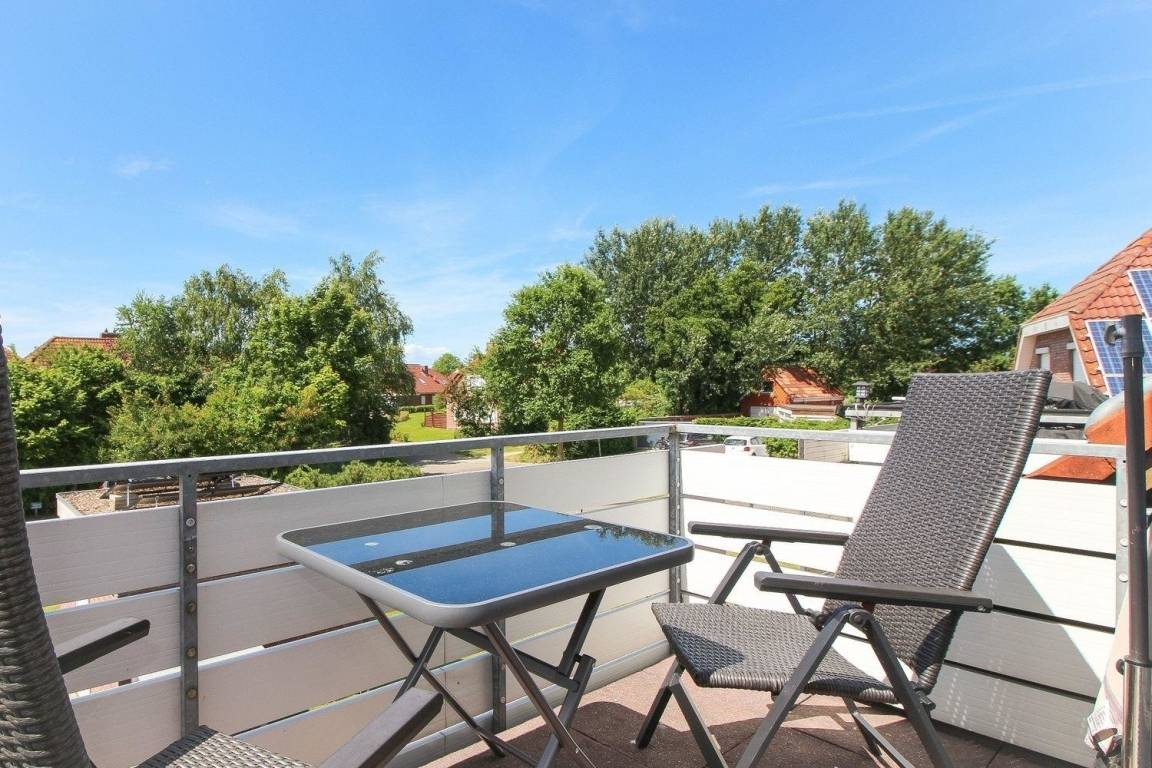 Die Ferienwohnung befindet sich im Obergeschoss in einer ruhigen Sackgassenlage. Der Norddeicher Strand ist fußläufig über den Strandpadd erreichbar.