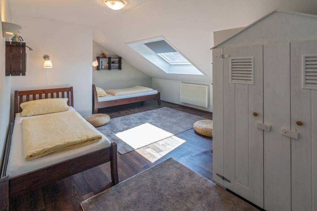 Die Wohnung erstreckt sich über zwei Etagen und ist ideal für Familien, Paare oder kleine Gruppen, die Wert auf eine durchdachte, liebevoll zusammengestellte Ausstattung und eine entspannte, angenehme Atmosphäre legen.