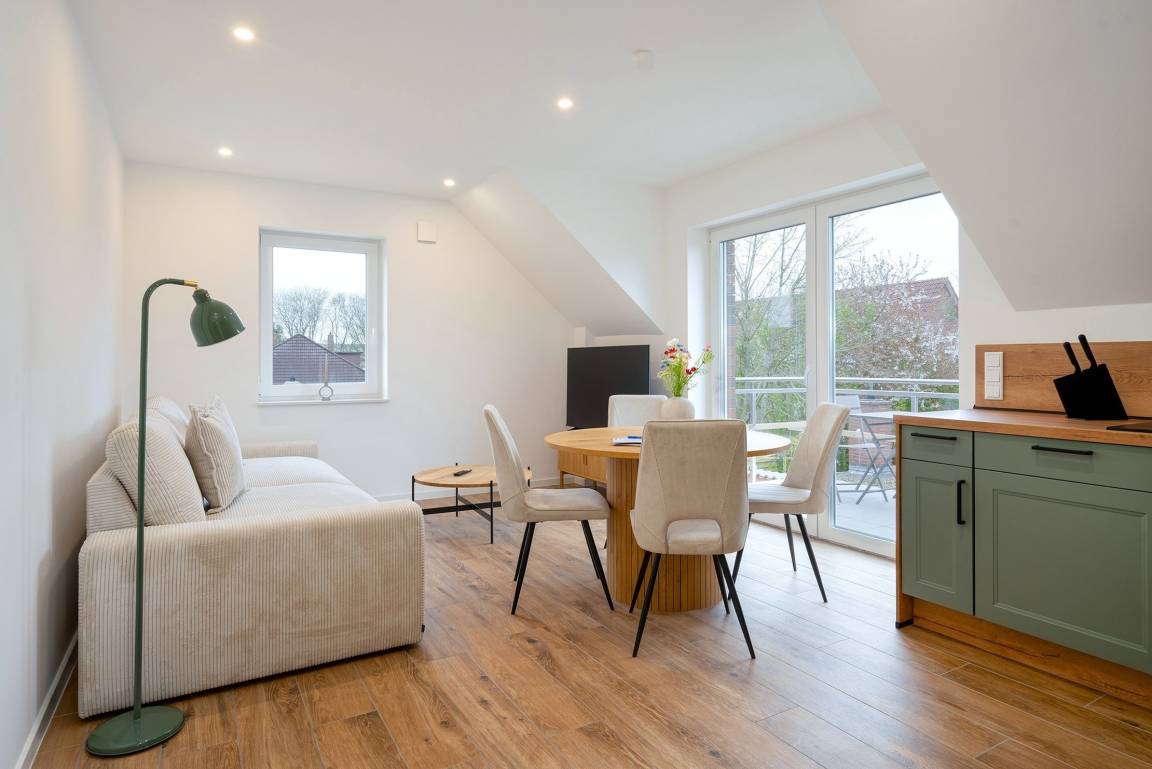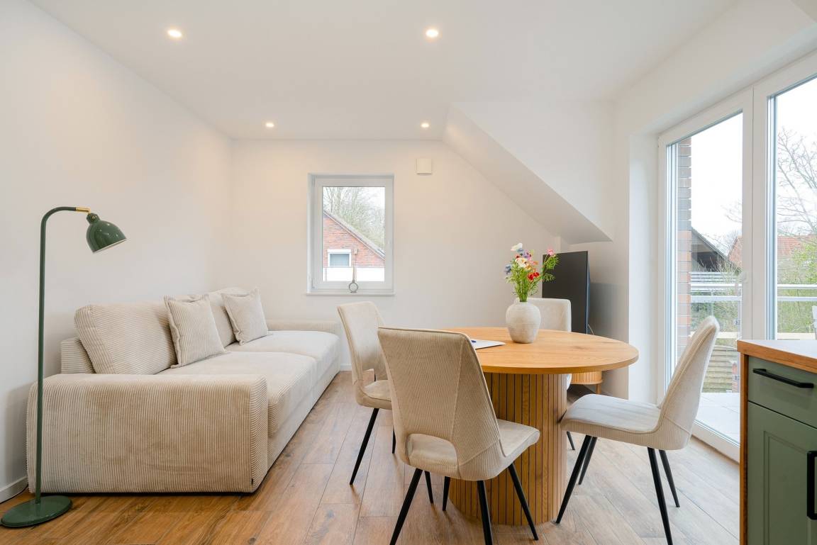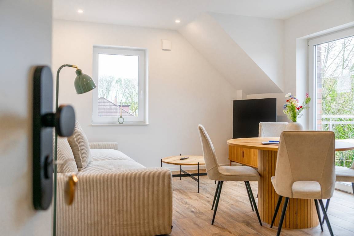 Die Ferienwohnung "WATT'N Traum II" im beliebten Küstenort Norddeich bietet eine ideale Unterkunft für entspannte Tage an der Nordsee. Sie liegt im Obergeschoss und erstreckt sich über 55qm, was ihr eine gemütliche Atmosphäre verleiht. Sie verfügt über zwei geschmackvoll eingerichtete Schlafzimmern und ist somit perfekt für Familien oder Paare, die gemeinsam Erholung suchen. Der großzügige Wohnbereich bietet neben einer Sitzecke eine voll ausgestattete und hochwertige Einbauküche. Ein besonderes Highlight der Wohnung ist das Tageslichtbad, was über eine Infrarotkabine verfügt, die nach langen Spaziergängen Erholung bietet. Auch der Balkon verspricht erholsame Stunden im Freien. Ein eigener PKW-Stellplatz steht Ihnen auch zur Verfügung. Durch die Lage unweit der beliebten Seehundaufzuchtstation erreicht man nach einem kurzen Spaziergang den Deich und Sandstrand.