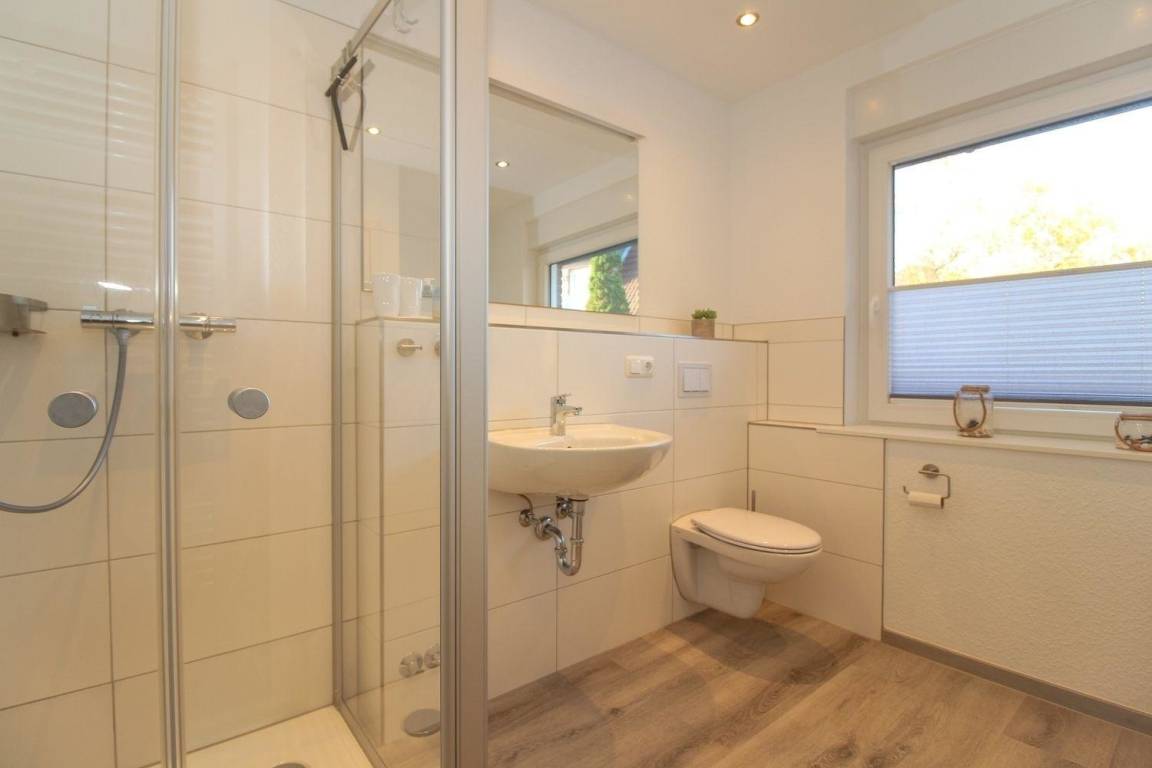 Das Tageslichtbad ist mit einer bodentiefen Dusche ausgestattet.