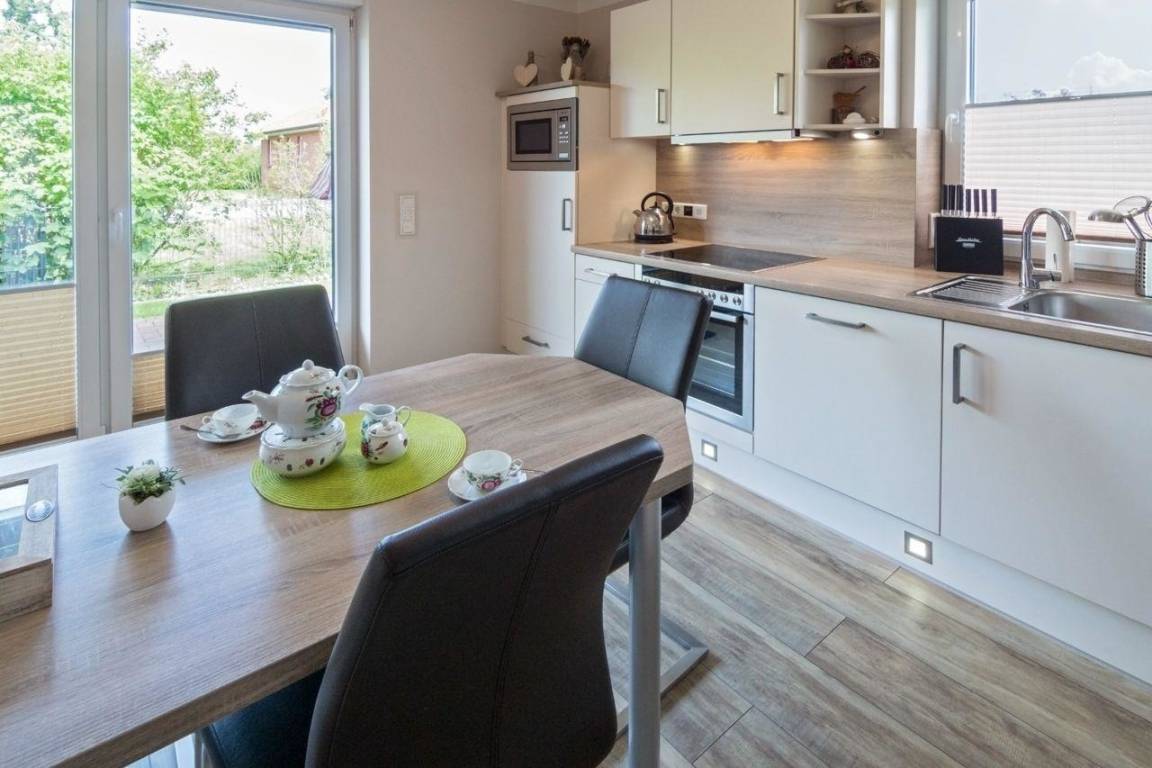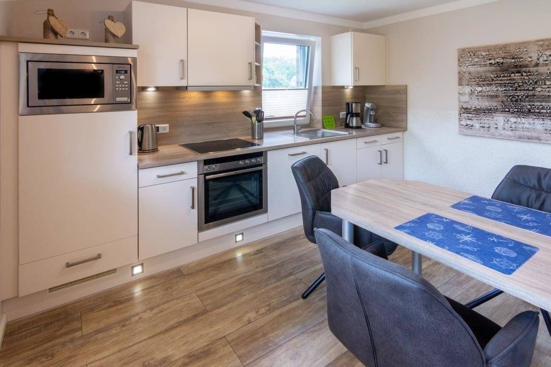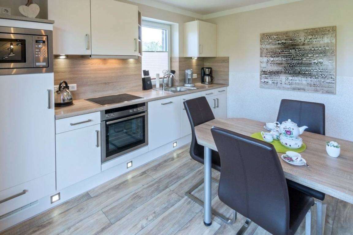 An Komfort mangelt es nicht. Das Wohnzimmer wurde mit Flachbildfernseher, SAT-TV, DVD- und CD-Player ausgestattet. Die moderne Einbauküche bringt alles mit, was Sie sich wünschen, angefangen beim Einbauherd mit Cerankochfeld über Mikrowelle bis hin zur Geschirrspülmaschine.