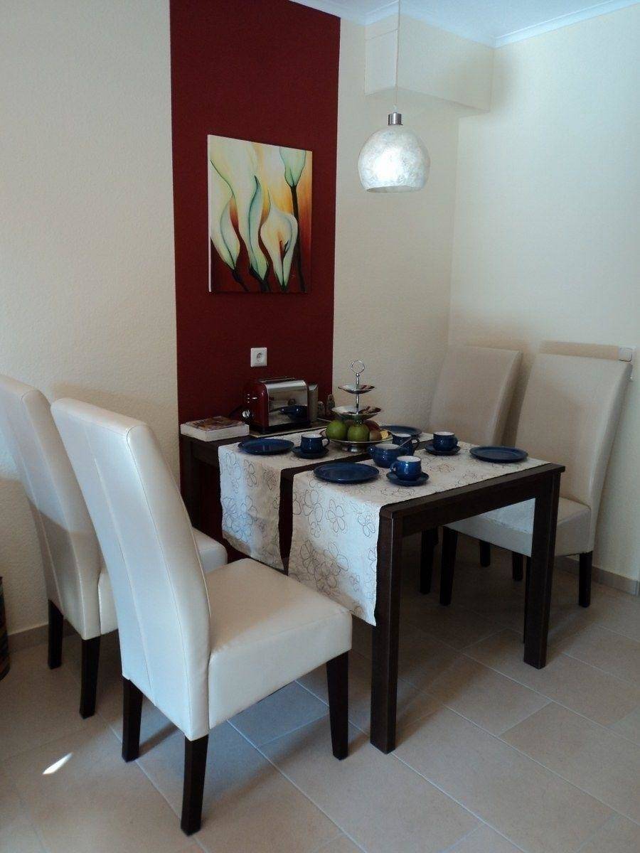 Beim Betreten der Wohnung merkt man gleich, dass die Wohnung mit Liebe zum Detail eingerichtet wurde. Die warmen und harmonischen Farbtöne schaffen eine gemütliche Atmosphäre. Im Wohnbereich lädt die Couch mit zwei Sesseln zum Wohlfühlen ein. Ein Flachbildschirm-TV und eine moderne Anlage sorgen für die Unterhaltung am Abend. An dem Wohnbereich schließt sich der Essbereich mit großem Tisch und vier Stühlen an. Die Einbauküche mit hat einige Extras wie zum Beispiel: Heißluftofen mit Grill, Ceranfeld, Kühlschrank mit Eisfach, Mikrowelle, Geschirrspüler sowie natürlich auch Wasserkocher, Kaffeemaschine, Toaster und ausreichend Koch- und Essgeschirr.