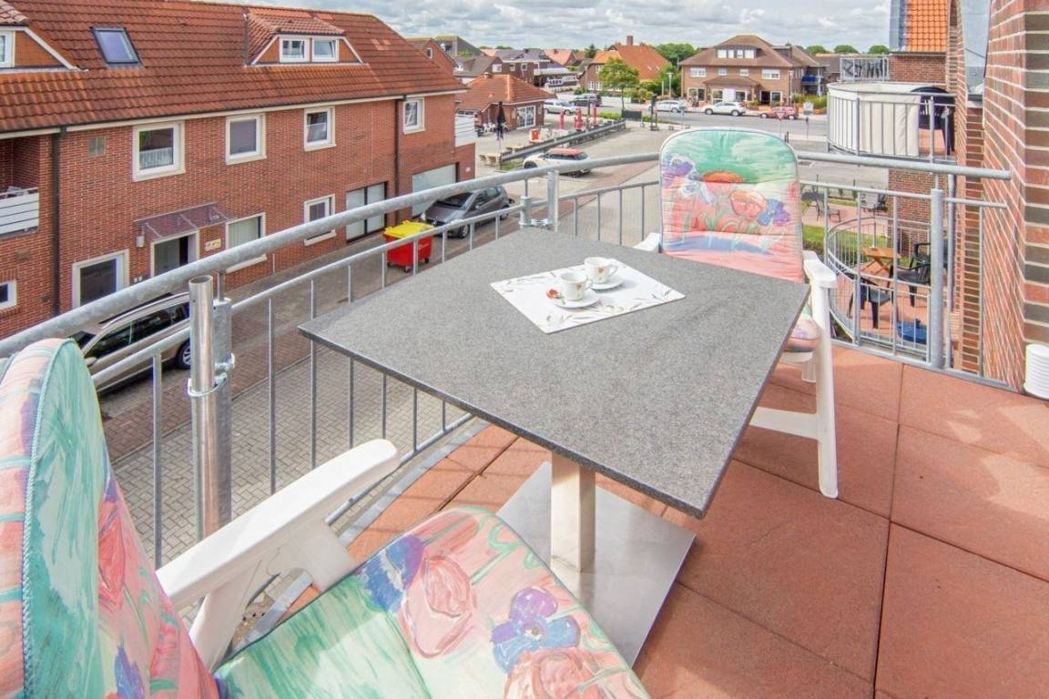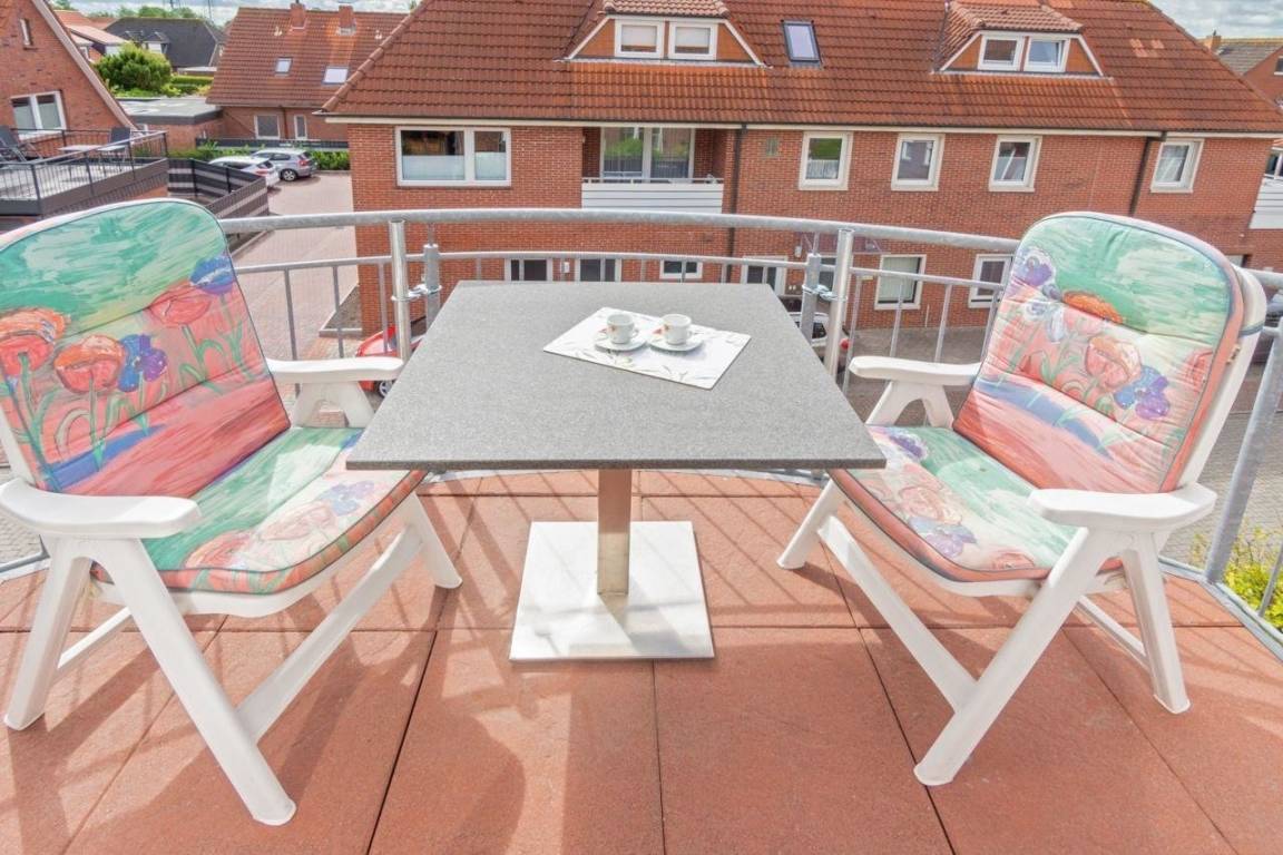 Die rund 70 Quadratmeter große Ferienwohnung Sonnenplatz macht mit ihrem schönen Balkon dem Namen alle Ehre. Ideal geeignet für vier Gäste (und ein Kleinkind, Kinderbett vorhanden) lädt das Appartement zu entspannten Tagen an der Nordsee ein.