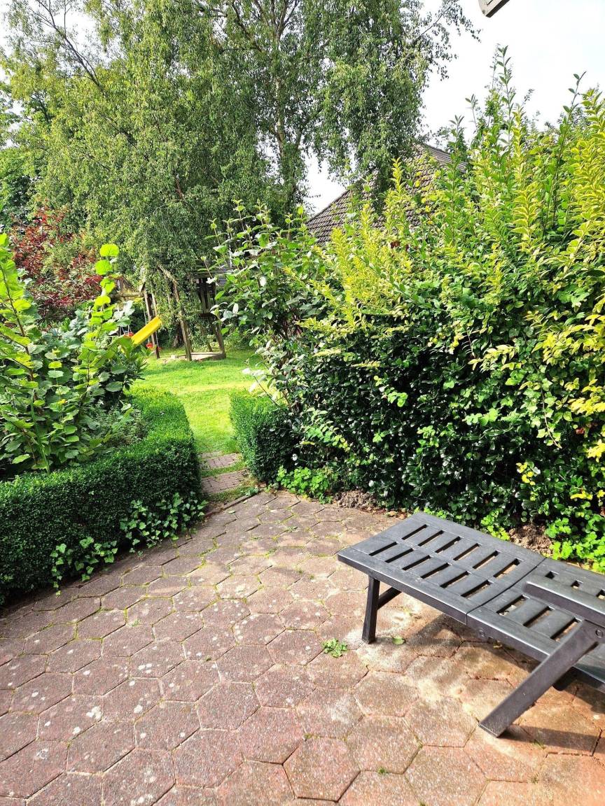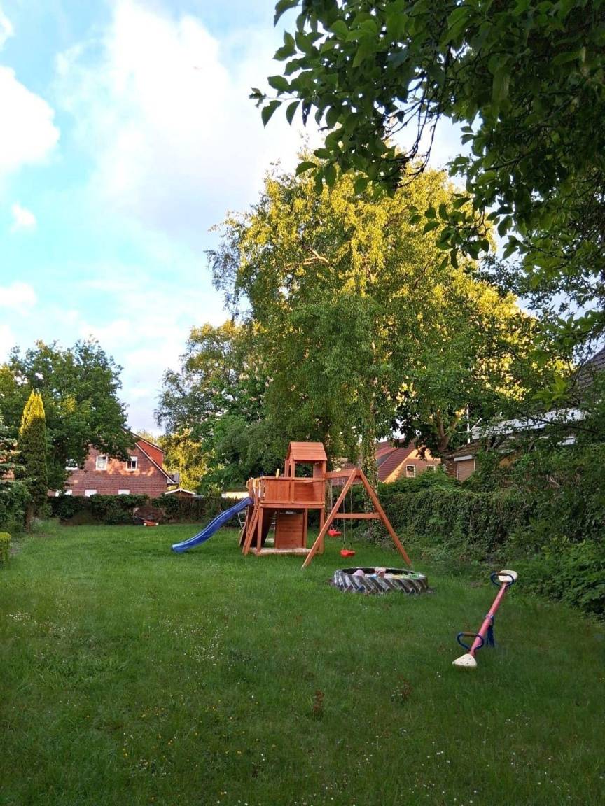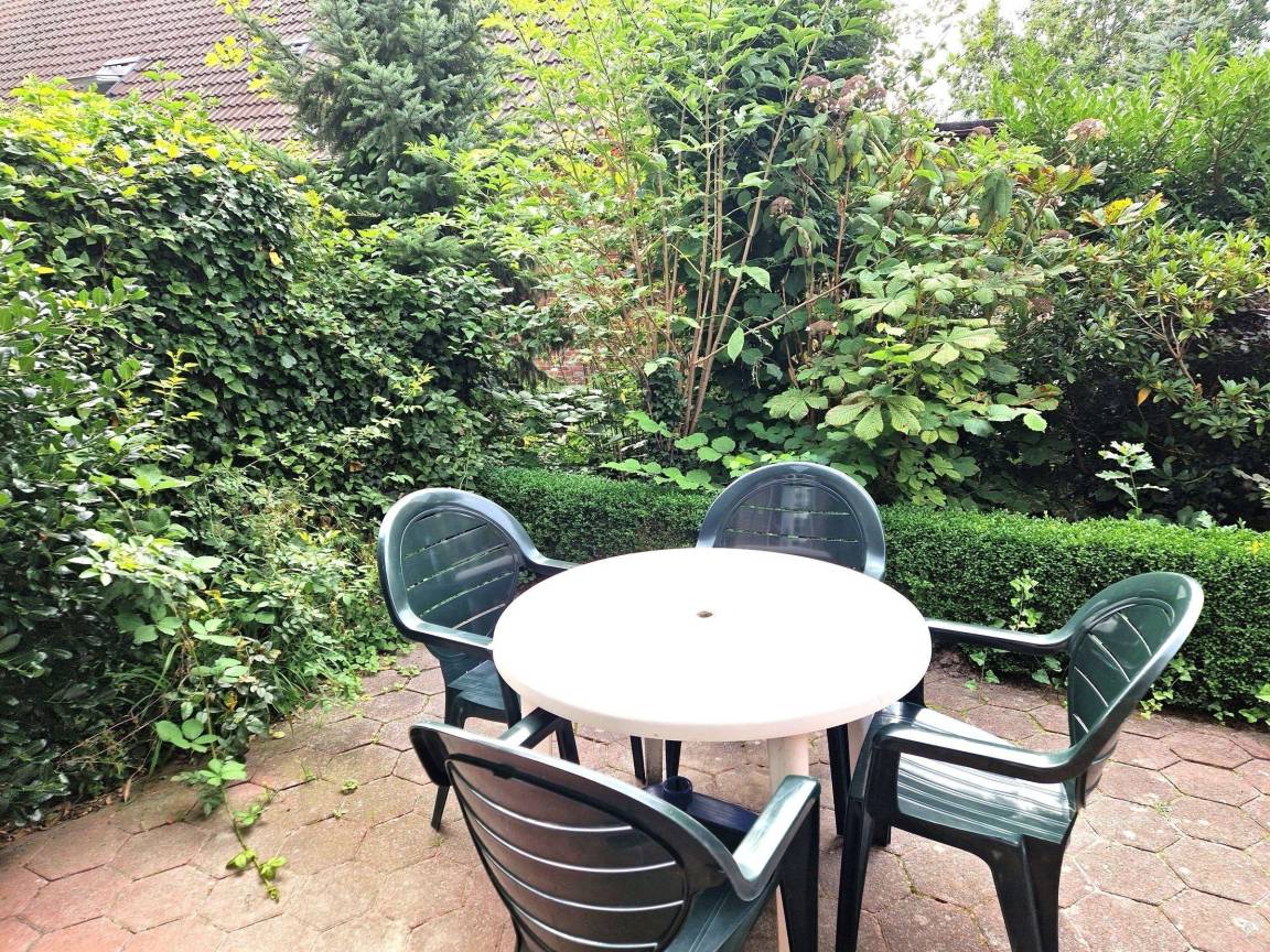 Die Ferienwohnung bietet einen einladenden Außenbereich, ideal zum Entspannen und Spielen. Gäste können die eigene Terrasse nutzen, um die Sonne zu genießen und entspannte Stunden im Freien zu verbringen. Zusätzlich steht ein Gemeinschaftsgarten zur Verfügung, der einen privaten Spielplatz beherbergt, der besonders für kleinere Kinder geeignet ist.