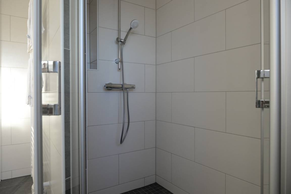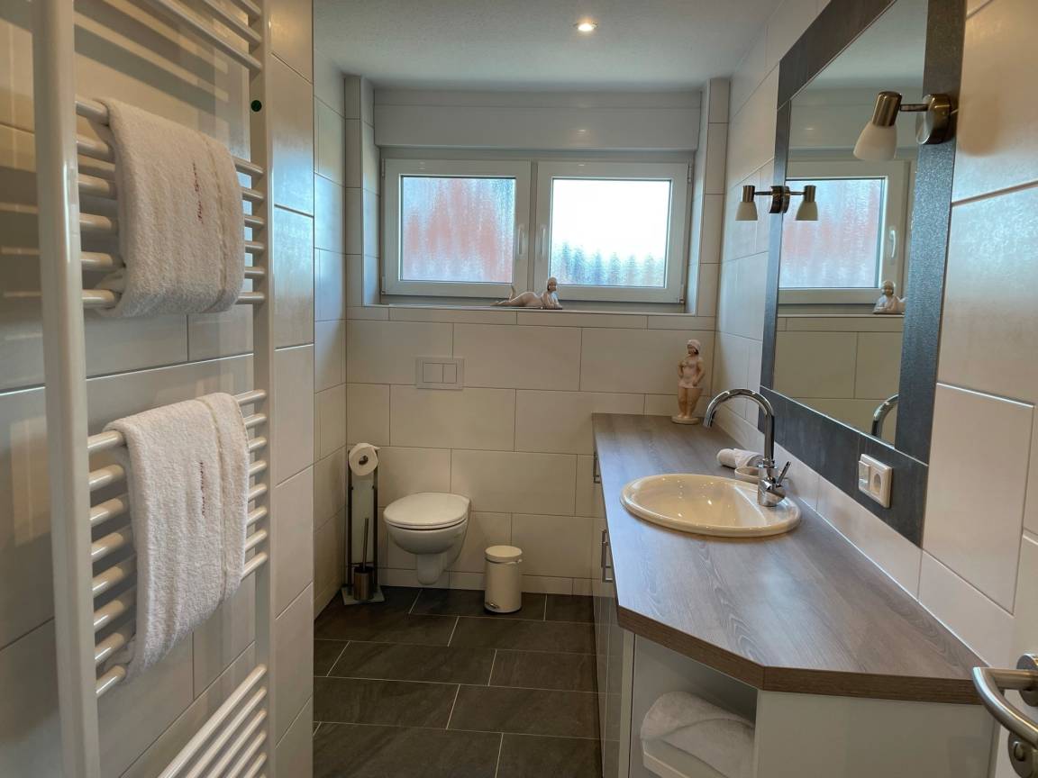 Das moderne Bad/WC ist mit einer bodenebenen Dusche ausgestattet.